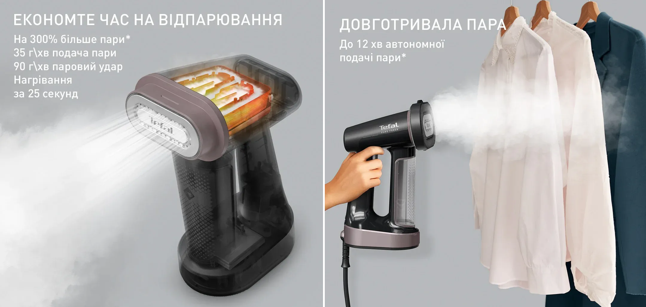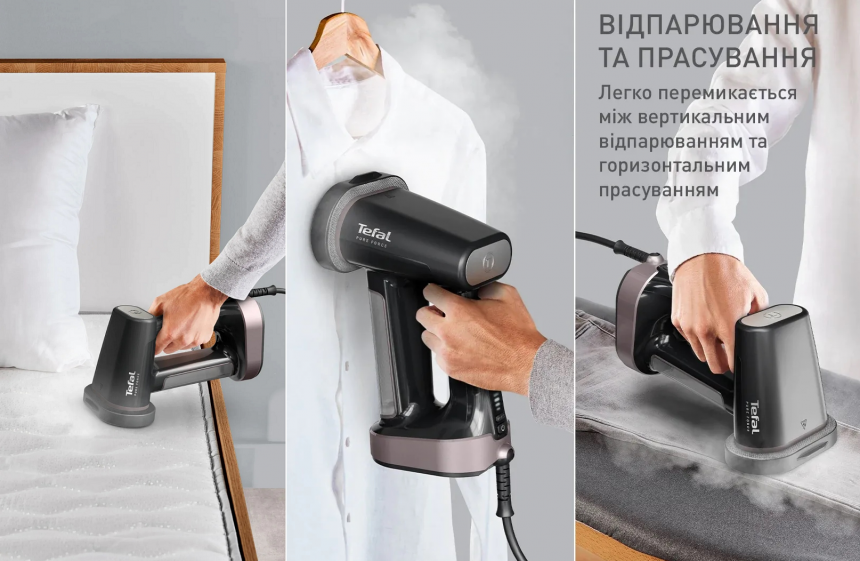 Коли кожна хвилина на вагу золота, а зовнішній вигляд має бути бездоганним – потрібен пристрій, який працює швидко та ефективно. Компактний Tefal Pure Force DT8765E0 не просто вдосконалює процес догляду за одягом, а переосмислює його.