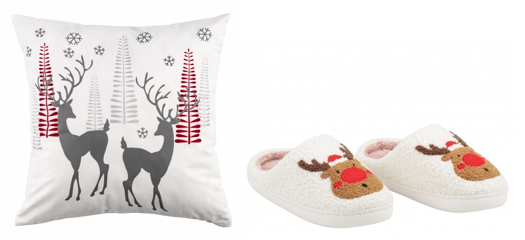 Пледи Fleece і Flannel із нордичними візерунками сіро-білих відтінків (коди товарів: ART0716PB, ART0110PB, ART0115PB, ART0113PB, ART0111PB, ART0119PB) огортають спокоєм і теплом, а закриті білі капці з оленями (коди товарів: ART2536DW, ART2538DW, ART2540DW) підкрес­люють відчуття легкості й додають комфорту щодня.