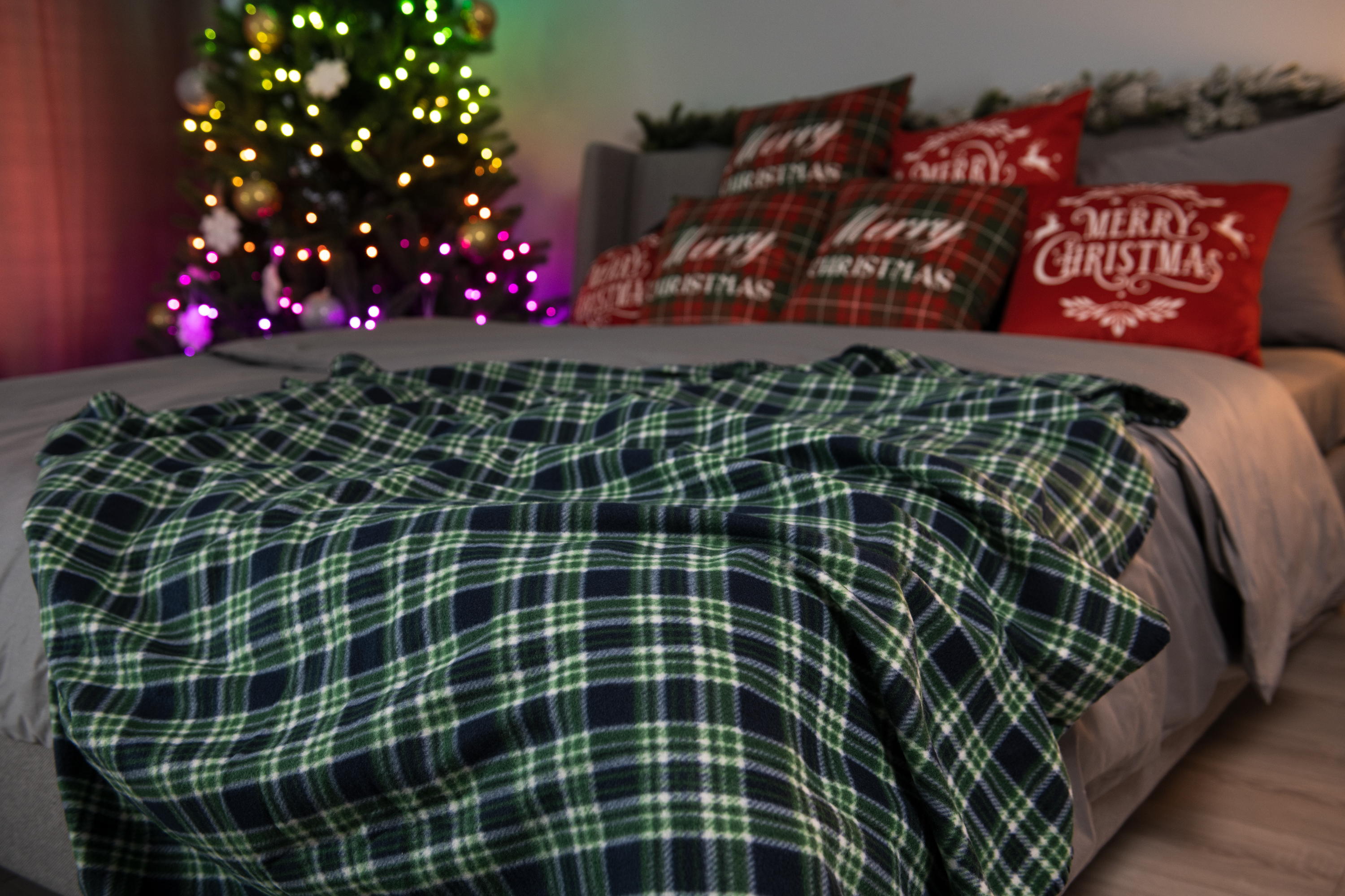 Усі товари колекції Christmas – пледи, капці та кухонний текстиль – об’єднано за трьома кольоровими напрямами: