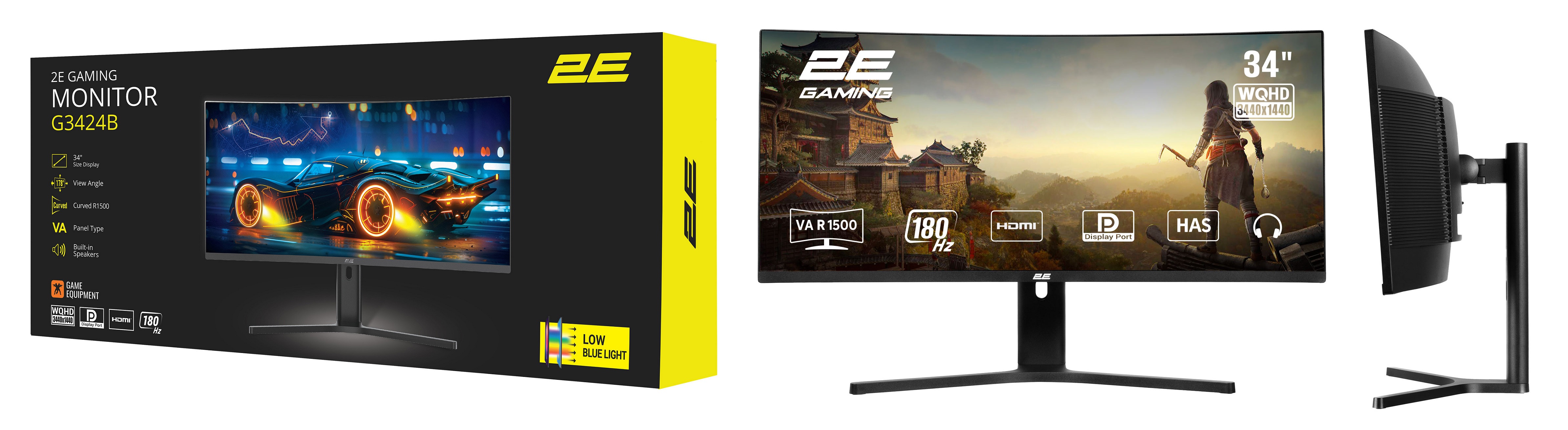 Досвідченим гравцям варто звернути увагу на ігрову модель 2E G3424B із діагоналлю 34“ і співвідношенням сторін 21:9. Однією з головних переваг цього монітора є матриця VA CURVED R1500, яка забезпечує чудовий рівень контрастності 4 000:1 і роздільну здатність 3 440 × 1 440, гарантуючи якісну картинку з високим рівнем деталізації.
