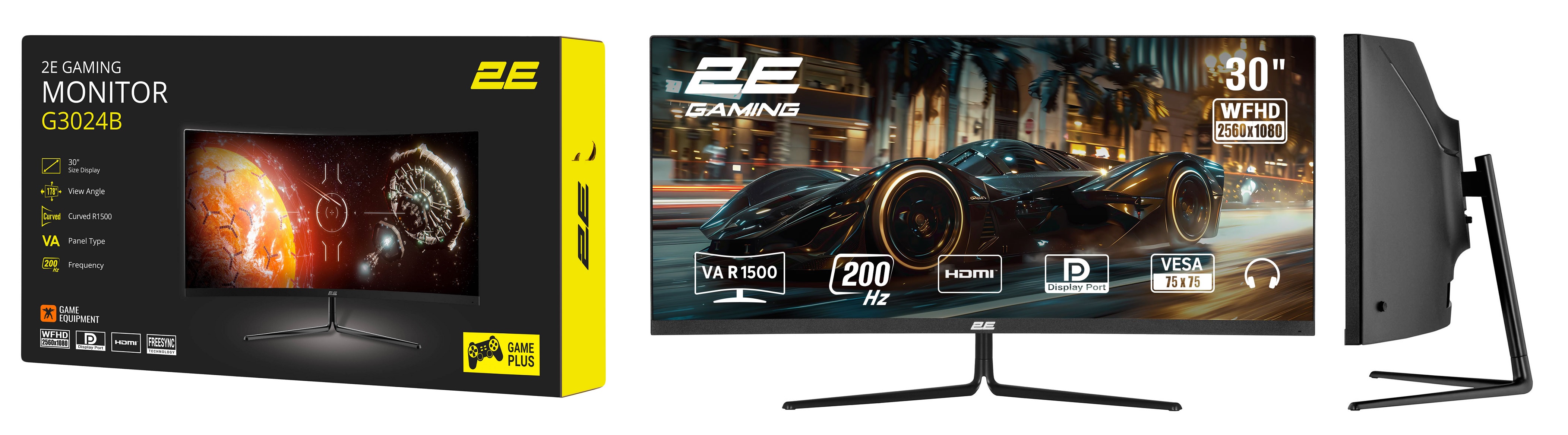 Створений для найінтенсивніших геймінгових вражень, 30-дюймовий ігровий монітор 2Е G3024B може похизуватися вигнутою матрицею. Роздільна здатність 2 560 × 1 080 пікселів відповідає за деталізоване та чітке зображення для глибокого занурення в гру.