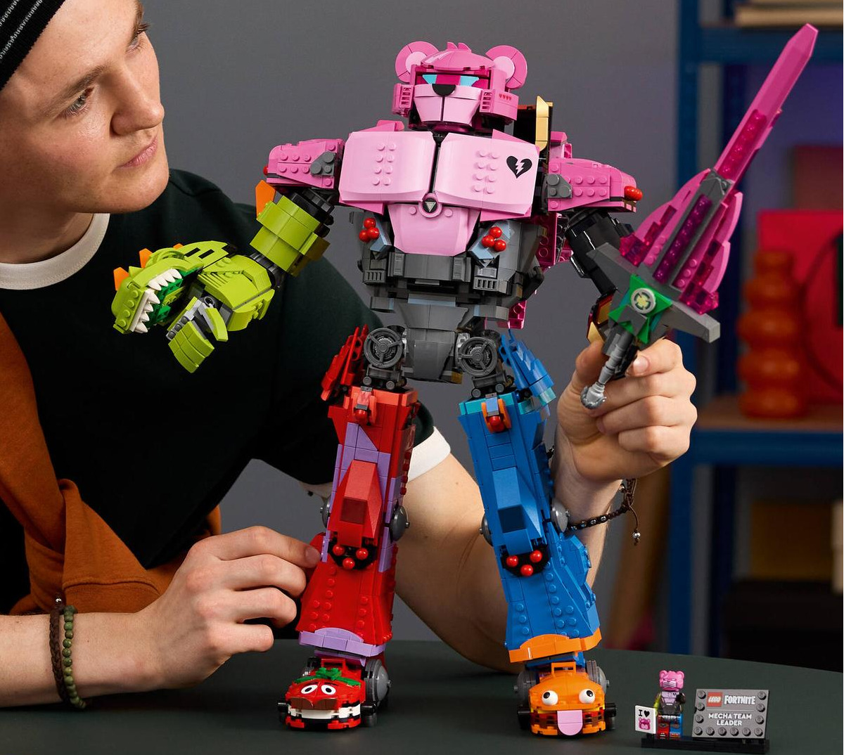 Понад 2 500 деталей – і культовий робот Mecha Team Leader постає в усій красі! Герой, який врятував острів у фіналі першого розділу Fortnite Battle Royale, тепер стає частиною колекції або центром нових пригод. Повністю рухома фігура з мініфігуркою пілота всередині, а також два бонусні скіни – Mecha Team Leader і Mecha Team Shadow.