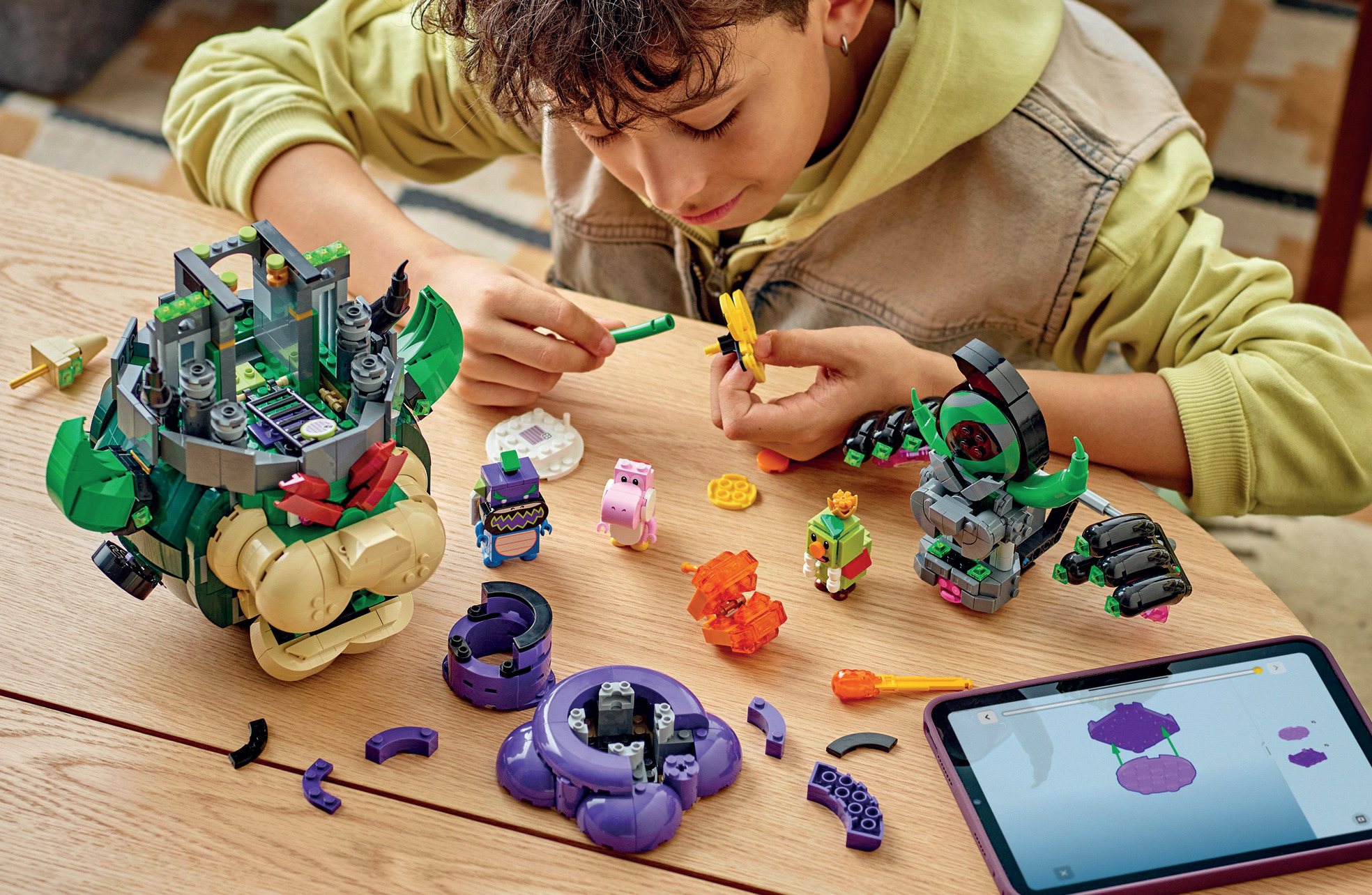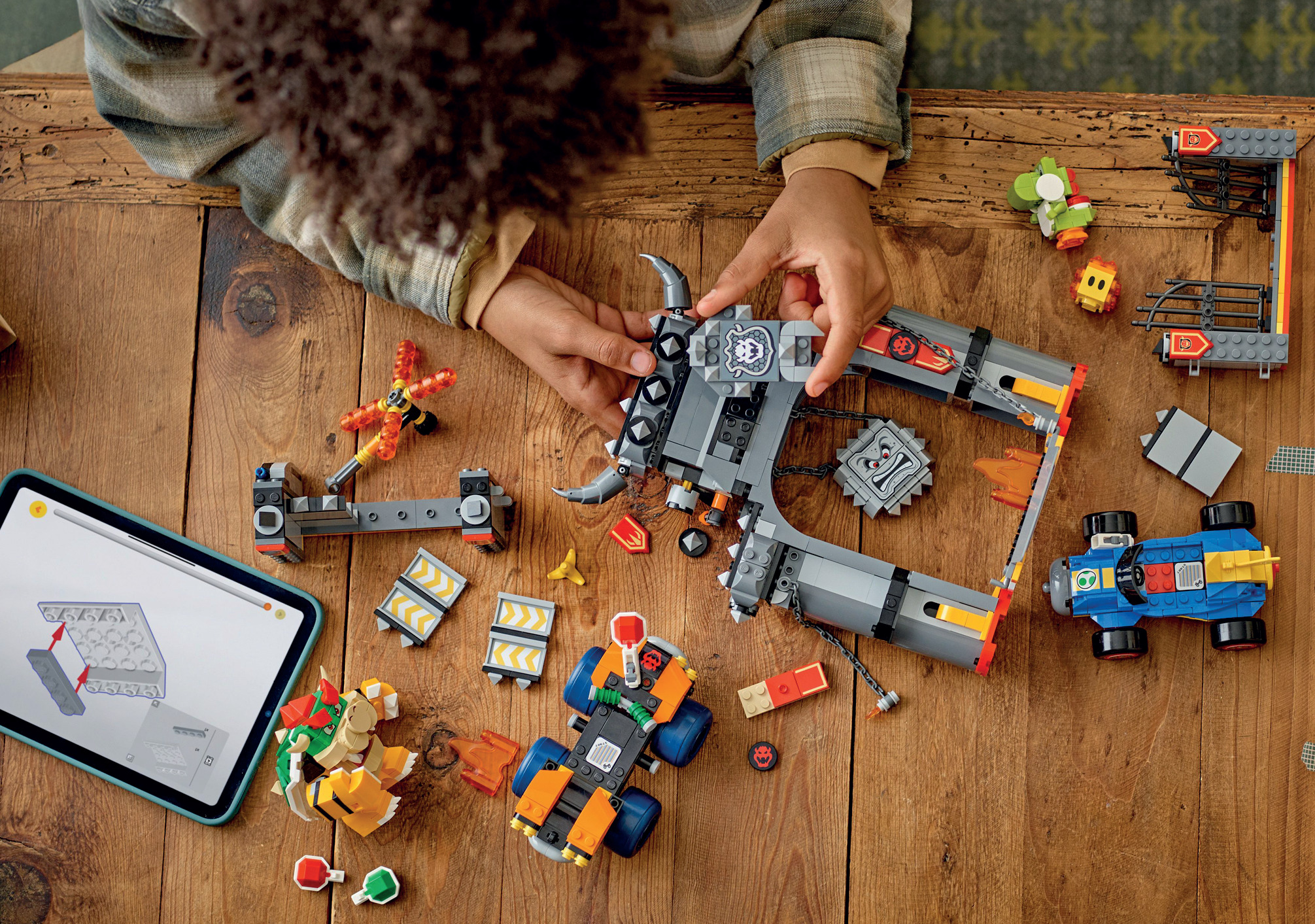 Набори переносять шалені перегони Mario Kart до реального світу. Можна конструювати культові машини, запускати снаряди, дрифтувати та змагатися з друзями. Можливість інтегрувати фігурки Маріо, Луїджі або Піч з інших наборів (коди товарів: 71439, 71440, 71441 або 72043 – продають окремо) додає інтерактивності, активуючи звукові та візуальні ефекти, що занурюють в ігровий вир. Крім того, набір із Боузером надає змогу розігрувати сцени битв, пробиваючи стіни замка та оминаючи небезпеки.