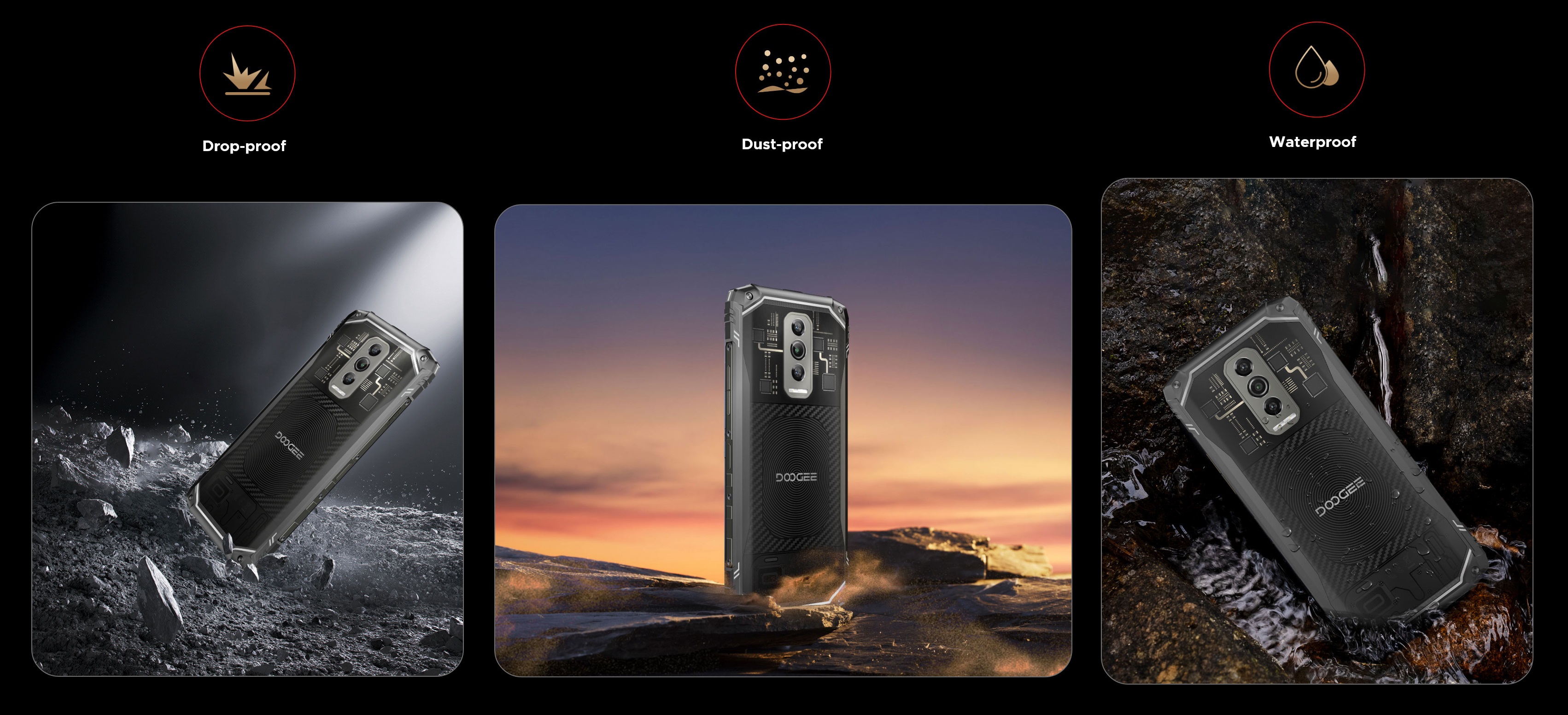 Doogee створено щось особливе. Корпус із авіаційного алюмінію вагою лише 240 г, тож смартфон напрочуд легкий як для захищеного пристрою. Незважаючи на посилений захист, смартфон зручно лежить у руці та не здається громіздким. Завдяки задній панелі з ефектом прозорості пристрій має стильний і технологічний вигляд, крім того, можна роздивитися його внутрішню конструкцію. Блок камер охайно інтегровано в прогумований корпус, він майже не виступає над поверхнею.