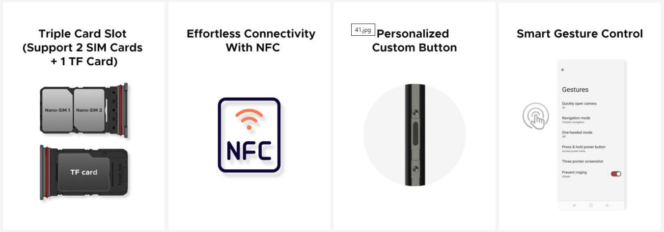 Розташування елементів керування та портів вдало продумане. На правій грані розміщено дві клавіші регулювання гучності та кнопку ввімкнення, яка одночасно слугує сканером відбитків пальців. Ліва грань містить комбінований слот для двох Nano-SIM карт і карти пам’яті TF, а також програмовану кнопку, яку можна налаштувати для швидкого доступу до потрібних функцій.
