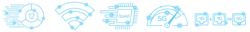 Цей потужний процесор оптимізовано, щоби AX12 автоматично ухвалював миттєві інтелектуальні рішення щодо планування трафіку даних для максимального використання пропускної здатності Wi-Fi.