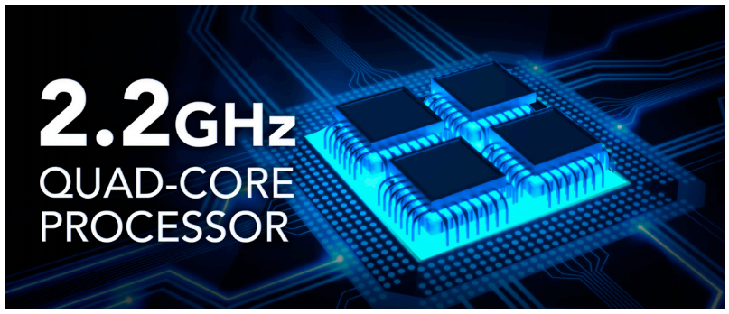 Оптимізований для Wi-Fi 6 потужний 64-розрядний 4-ядерний процесор 2,2 ГГц забезпечує плавне потокове передавання та запуск ігор у форматі 4K/8K UHD, що оптимально згодиться для гігабітної швидкості інтернету.