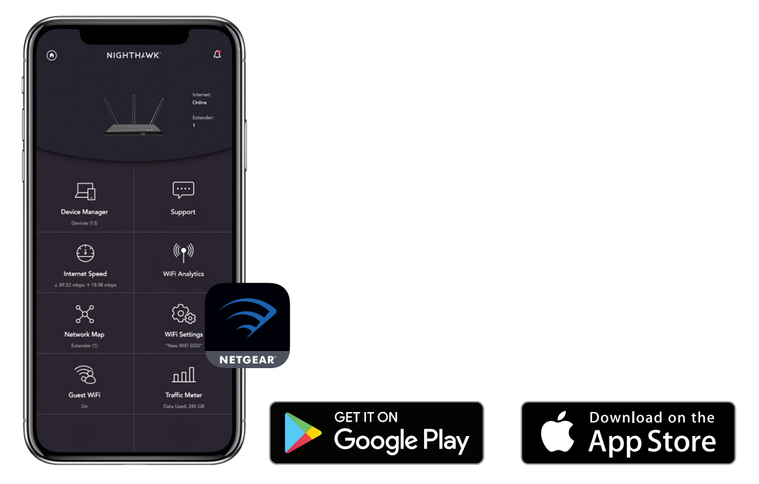 Спеціально розроблений NETGEAR зручний застосунок Nighthawk дає змогу легко налаштувати маршрутизатор й отримати більше від Wi-Fi: просто підключіть свій мобільний пристрій до мережі маршрутизатора, а програма допоможе виконати через решту кроків.