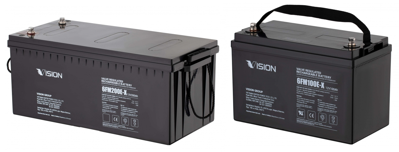 Акумулятори Vision, серії CP і FM - герметизовані свинцево-кислотні необслуговувані акумуляторні батареї, електроліт яких абсорбований в скловолокнистий наповнювач (технологія AGM). Акумулятори не вимагають обслуговування і доливання води протягом усього терміну служби. Кожен елемент акумулятора забезпечений запобіжним клапаном. Корпус виготовлений з газонепроникної пластмаси ABS. Допускається експлуатація акумулятора в будь-якому положенні без витоку електроліту.