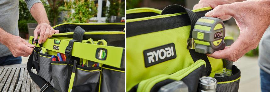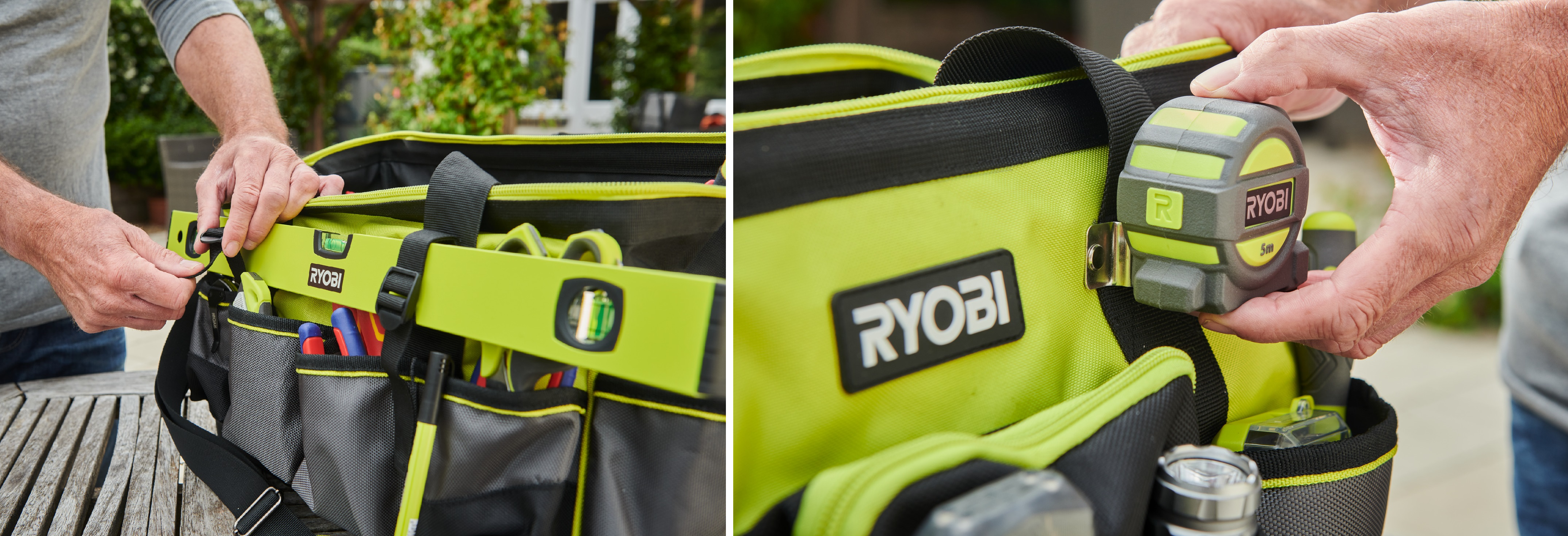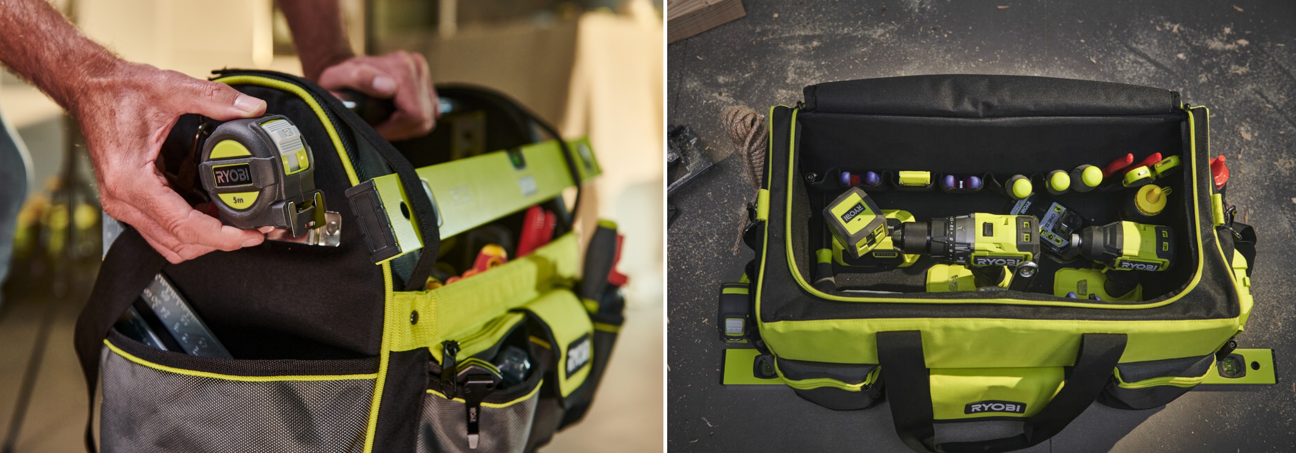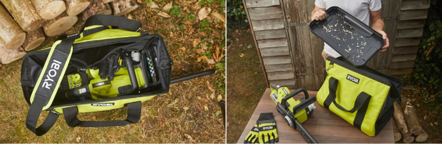 Сумки для інструментів – вдалий баланс між місткістю й компактністю. RYOBI пропонує різні моделі – від відкритих і закритих із жорсткою конструкцією, як-от: UTB2 (15 л), RSSSOT1 (17 л), RSSSTB1 (22 л), RSSMTB1 (33 л), RSSLOT1 (38 л), до містких сумок на коліщатках RSSLTB2 (49 л) та без RSSLTB1 (49 л).
