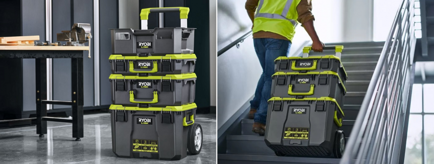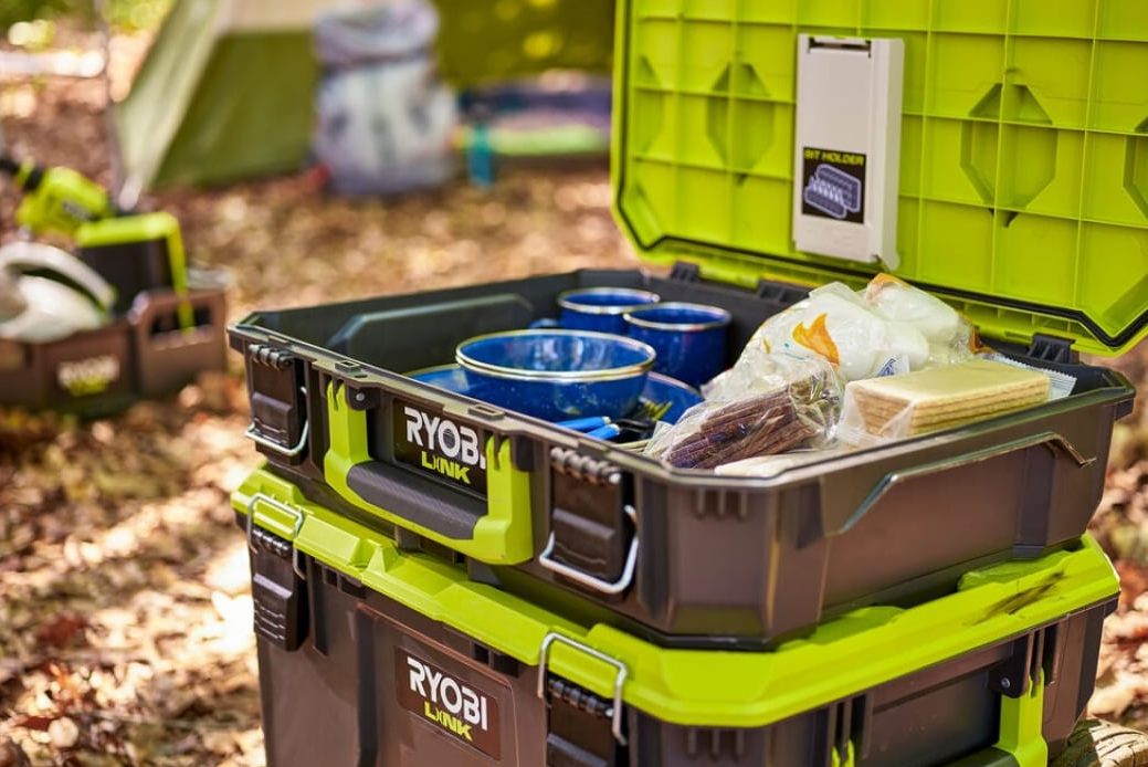Модульні ящики – для тих, хто шукає максимальну організацію для інструментів. Ящики лінійки Ryobi Link RSL101 (15 × 57 × 43 см), RSL102 (23,5 × 56 × 40,5 см) і RSL201 (39 × 57 × 49,5 см, із коліщатками та телескопічним руків’ям) забезпечують надійне зберігання та транспортування важкого інструменту.