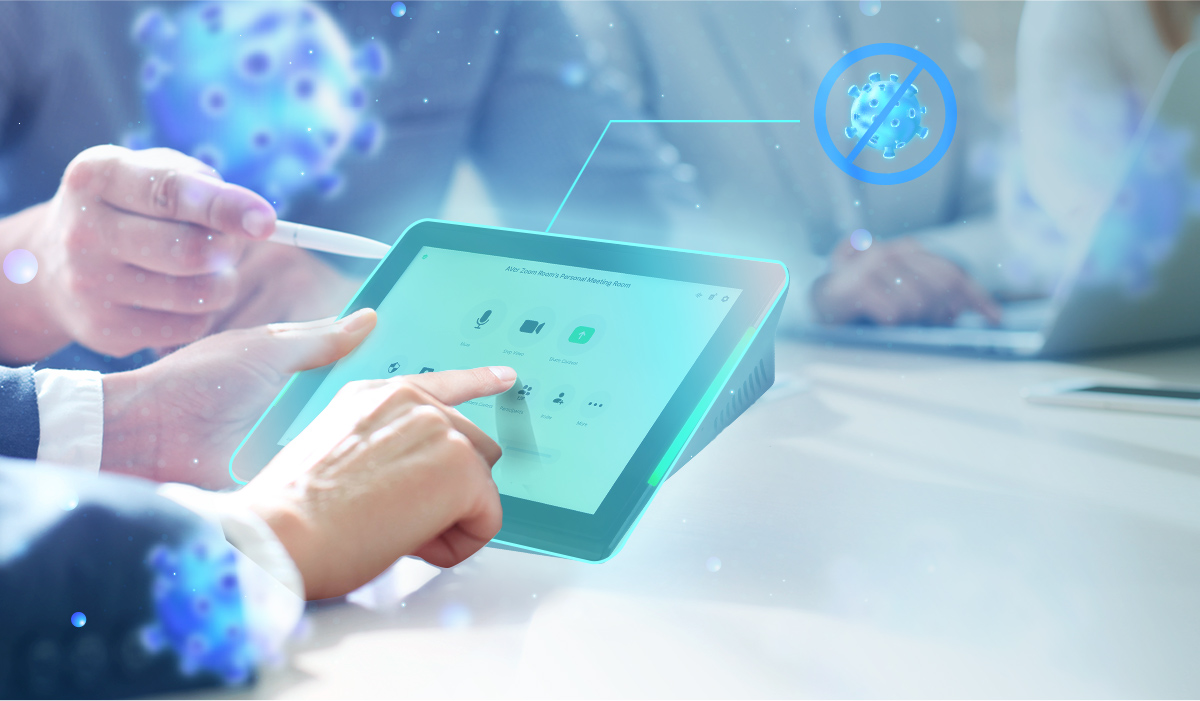 Проводьте наради з упевненістю, знаючи, що вдосконалений протибактеріальний сенсорний екран CP10 G2 забезпечує постійний захист, підтримуючи гігієнічне середовище для нарад, особливо у спільних робочих просторах.