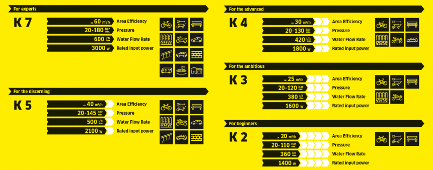 Kärcher створено мийки високого тиску різних класів, які задовольнять будь-які потреби: від компактних побутових моделей до професійних рішень.