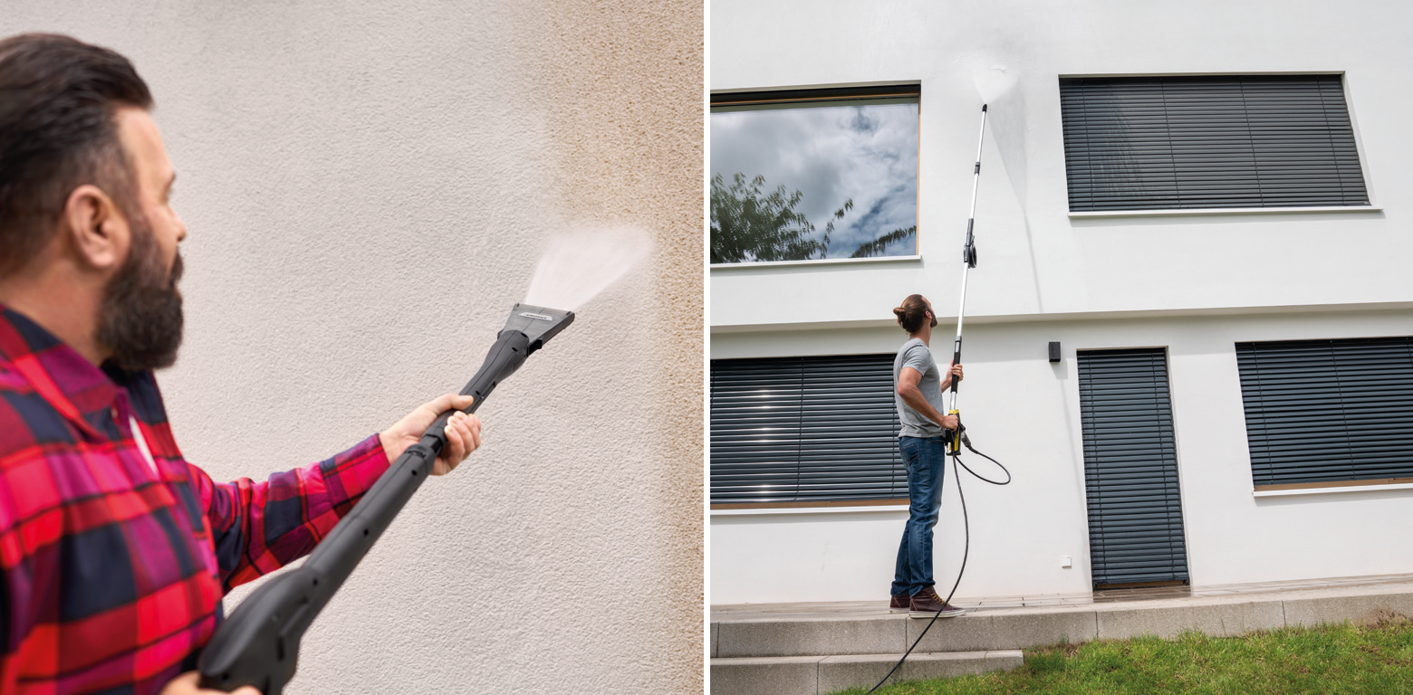 За допомогою телескопічної струменевої трубки можна швидко і легко очищати важкодоступні місця, в т. ч. високо розташовані ділянки фасадів. Ще однією її перевагою є наявність шарніра, що повертається на 180°, це дозволяє очищати вікна зимових садів, похилі дахи або навіси для автомобілів.