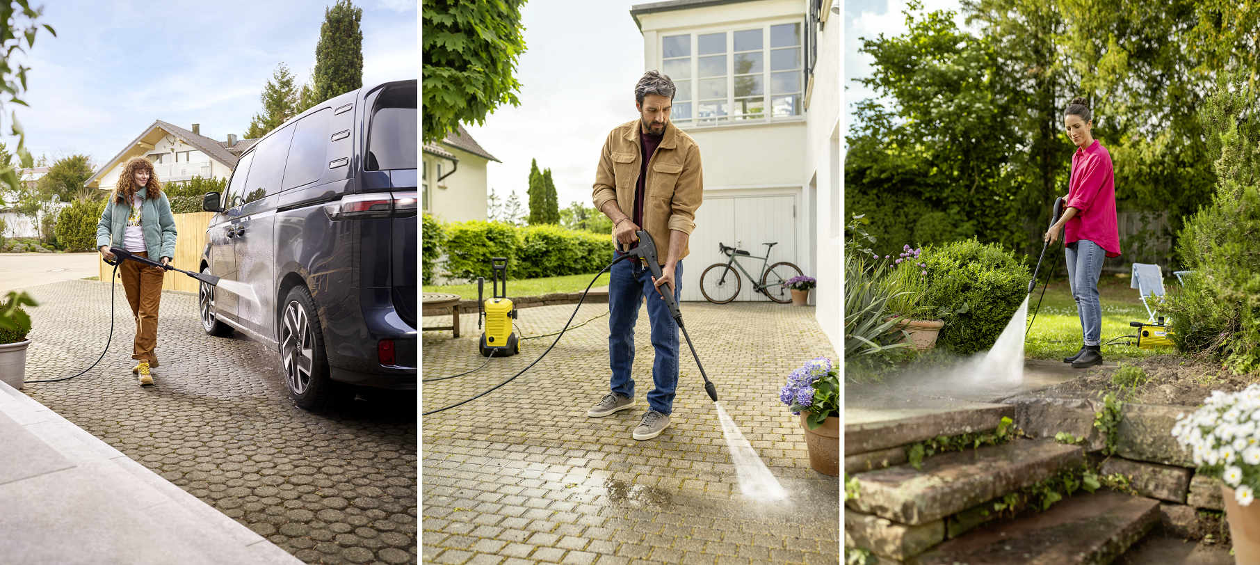 Мінімийка високого тиску K 3 Car & Home легко справляється з будь-якими забрудненнями. Оснащений 6-метровим шлангом високого тиску, він прекрасно підходить для періодичного прибирання навколо будинку і в саду, наприклад для очищення садових меблів, терас, доріжок і майданчиків, а також для миття автомобілів
