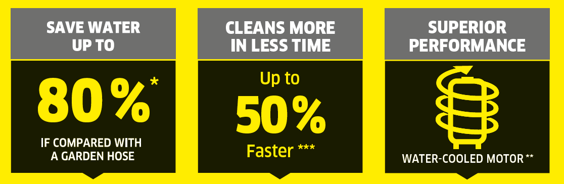 • До 80 % економії води у разі використання мінімийки Kärcher.