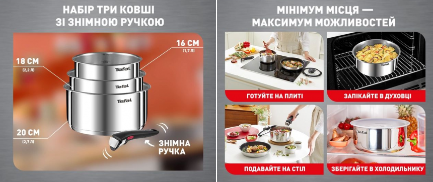 У світі, де функціональність та естетика мають йти пліч-о-пліч, Tefal знову підтверджує своє лідерство. Цього разу - завдяки стильному та практичному набору посуду Tefal Ingenio Emotion. Це не просто каструлі й сковорідки – це розумний підхід до кухонного простору.