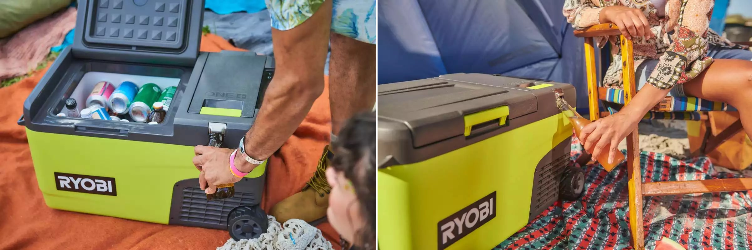 • RYOBI RY18CB23A-0 ONE+ 18В – сучасний портативний акумуляторний холодильник із системою гібридного живлення, функцією заморожування і підтриманню температури в діапазоні від +20 до -20 °С.