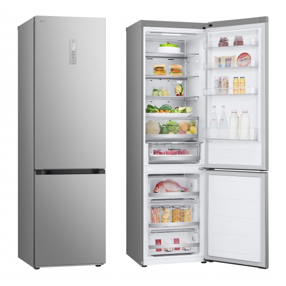 LG GC-B509FNMW – це сучасний холодильник із нижньою морозильною камерою та загальним об’ємом 387 л (277 л – холодильне відділення, 110 л – морозильне). Технологія No Frost запобігає утворенню льоду, а інверторний компресор забезпечує тиху та енергоефективну роботу. Зона свіжості зберігає продукти довше, а зовнішній дисплей дозволяє легко керувати налаштуваннями.