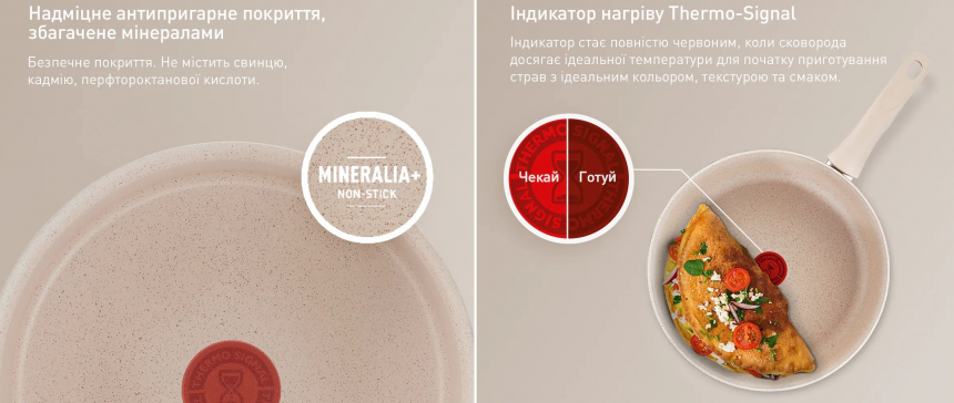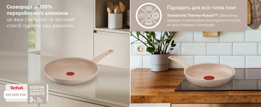 Колір також має значення. Сковорідки Tefal Delight виконано в елегантному бежевому кольорі, який гармонійно пасуватиме до будь-якого інтер’єру кухні – від класичного до сучасного.