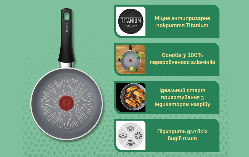 Усі сковорідки серії Tefal Halo мають протипригарне покриття нового покоління, що не лише поліпшує приготування страв, а й спрощує догляд. На додачу моделі серії сумісні з усіма типами плит, окрім індукційних, що робить їх оптимальним вибором для більшості кухонь.