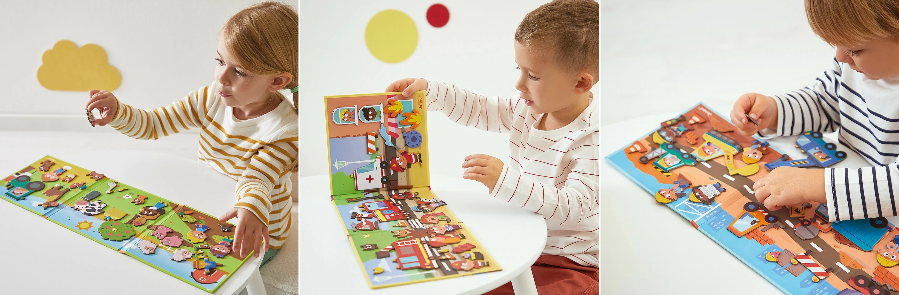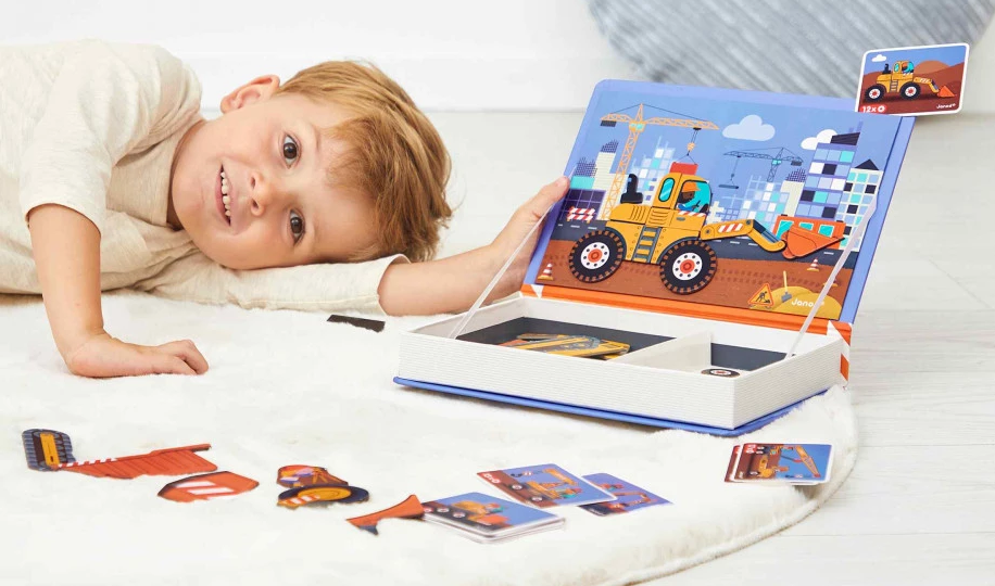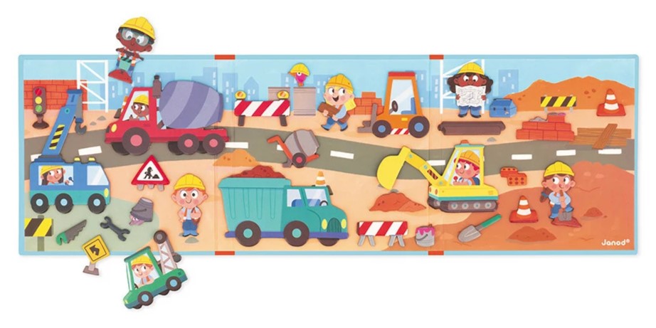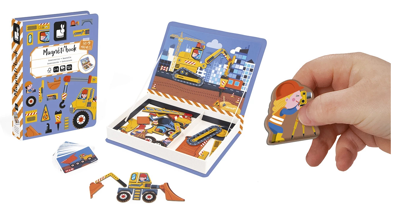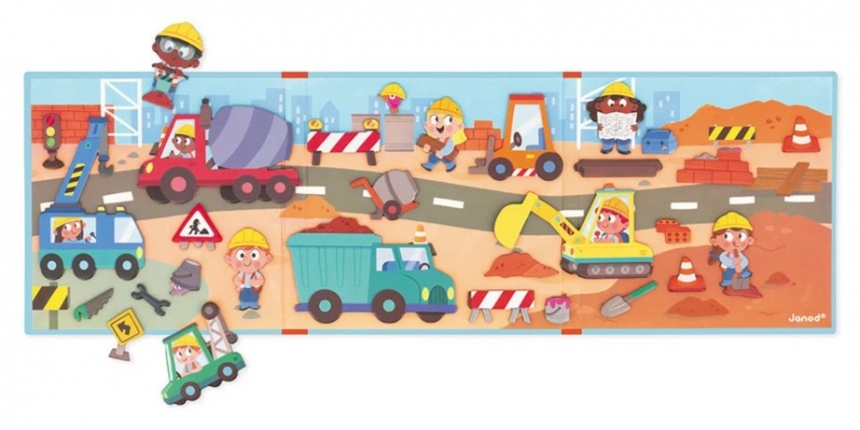 Магнітна гра на тему будівельного майданчика послужить відправною точкою для кращих історій і підійде для дітей віком від 3 років. Вони зможуть стимулювати свою уяву та працювати над дрібною моторикою, переміщаючи магніти на задньому плані.