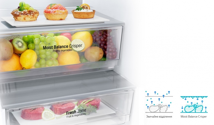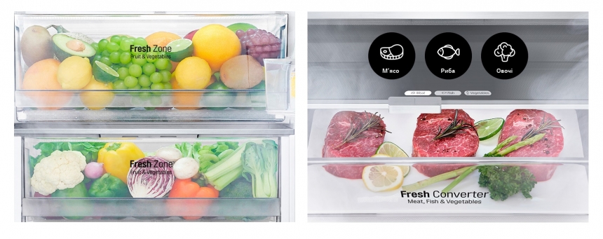 LG Thinner Insulation Wall: завдяки тоншим ізоляційним стінкам збільшено внутрішній об’єм, а отже, у холодильнику більше місця для зберігання щоденних і сезонних запасів.