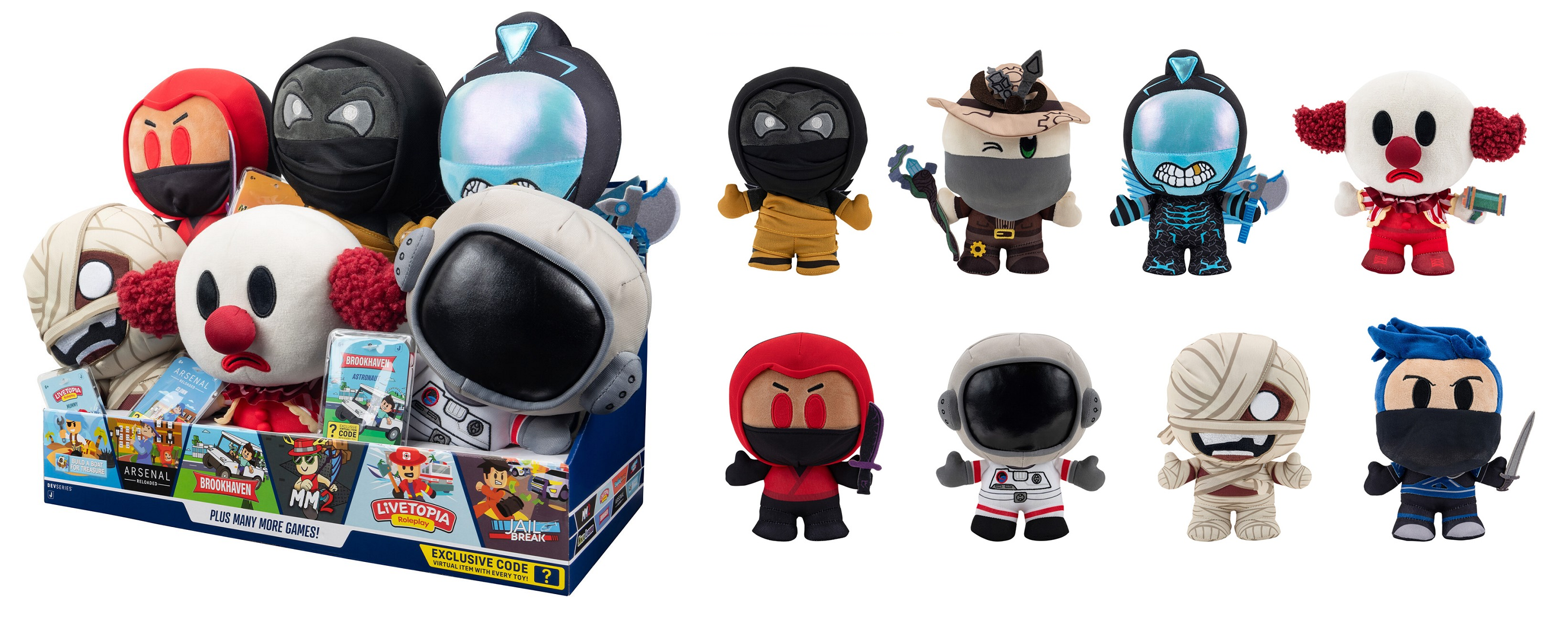 Як щодо м’якої версії улюблених персонажів? М’які та приємні плюшеві іграшки (20 см) – це не лише вдалий подарунок, але й вірний друг. У новій серії доступні персонажі з популярних ігор: Mummy (код товару: CRS0004), Astronaut (код товару: CRS0005), Assassin (код товару: CRS0006), Worthy0ne (код товару: CRS0013), Crimson Ninja (код товару: CRS0020), Clown (код товару: CRS0100), Underworld Lifter (код товару: CRS0101) та Vortex Rider (код товару: CRS0102). Усі іграшки вже чекають на своїх фанатів.