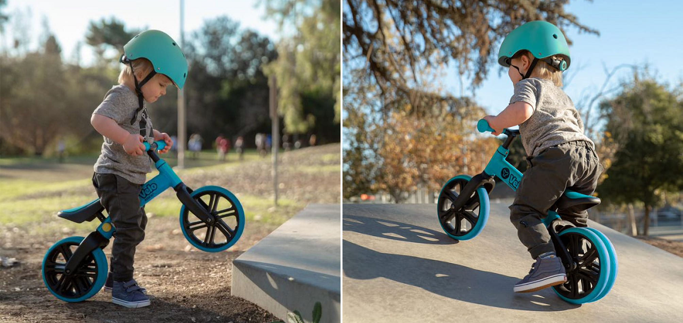 Серія Y Velo Junior 9″ оптимальна для дітей від 18 місяців. Завдяки здвоєному, відповідно ширшому, задньому колесу моделі вирізняються стійкістю, що особливо важливо на перших етапах катання.