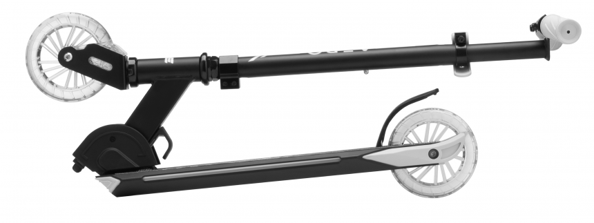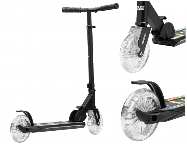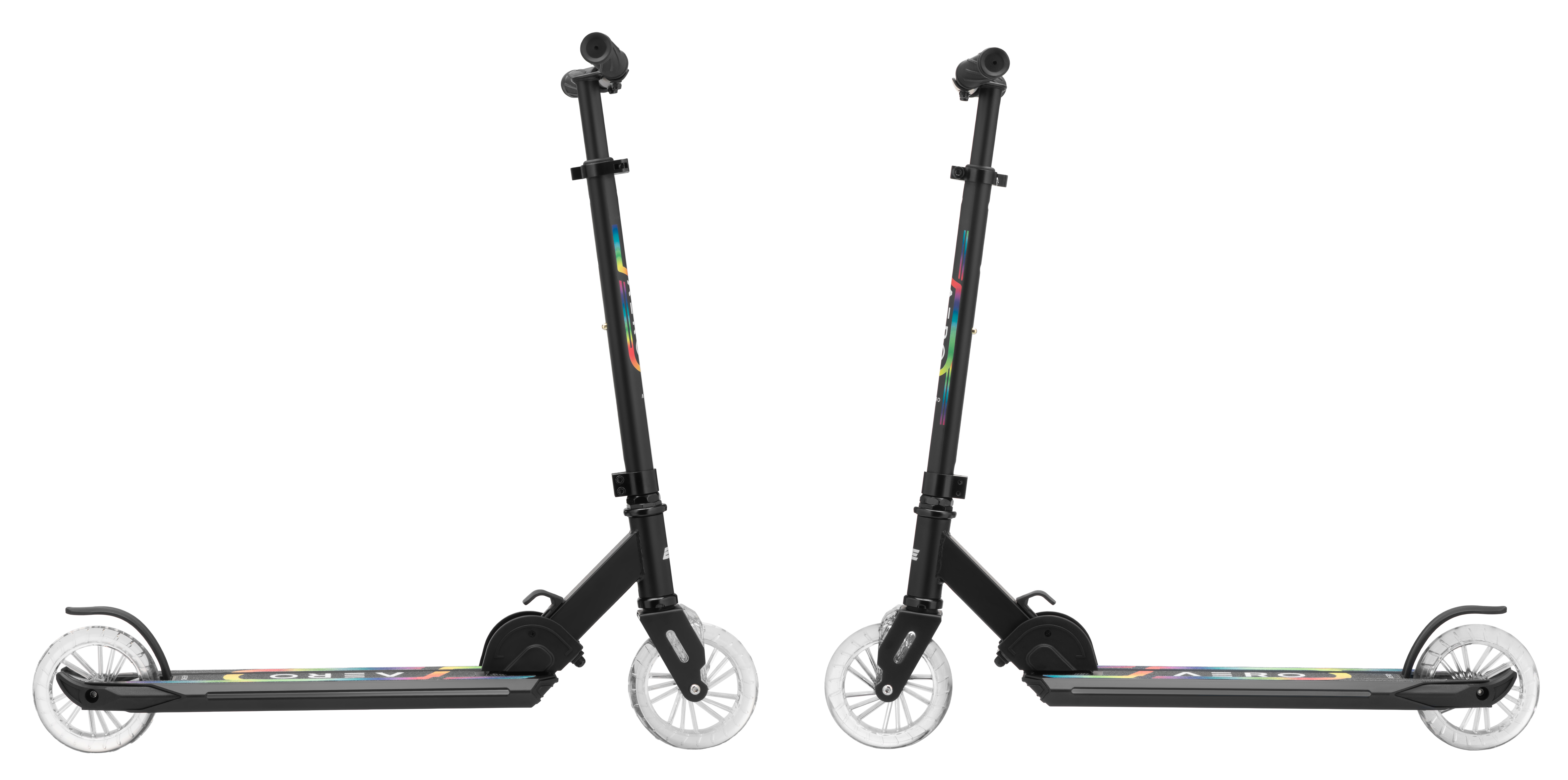 Самокати оснащено RGB-підсвічуванням: світлодіоди вмонтовано в колеса та деку, створюючи ефект неонової стежки під час руху. Можна вибрати з-поміж 7 кольорів і трьох режимів – постійне, плавне або швидке мерехтіння.