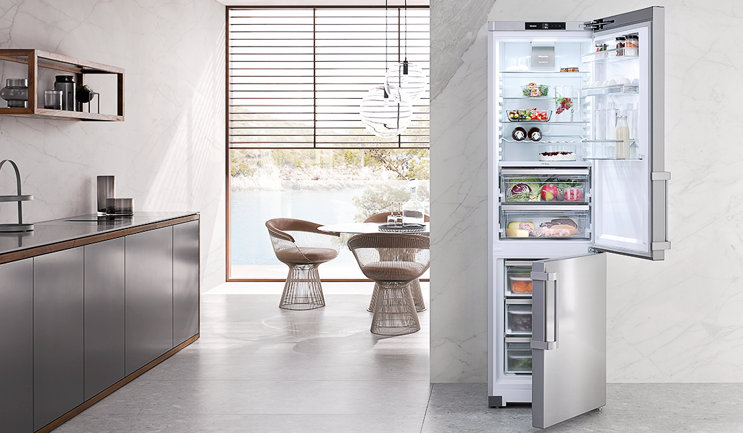 Miele KFN 4394 ED el — місткий холодильник з нижнім морозильником, виконаний у стильному корпусі з нержавіючої сталі. Холодильна камера на 279 л і морозильна на 89 л забезпечують багато місця для зберігання. Система No Frost позбавляє потреби розморожувати вручну. Інверторний компресор працює тихо та економно, а зона ZeroZone зберігає продукти свіжими довше. LED-підсвічування і багатопотокова циркуляція повітря гарантують комфорт і рівномірне охолодження. Надійність Miele — щодня!