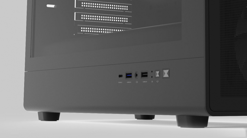 Корпус укомплектовано всіма необхідними деталями для складання та подальшої експлуатації, є стандартні сучасні актуальні інтерфейси та розніми. Кнопка керування живленням, перезавантаження, аудіопорти, 1 × USB 2.0, 1 × USB 3.0, 1 × USB Type-C, індикатори розташовані знизу на бічній панелі. Завдяки продуманому кабель-менеджменту можна розмістити кабелі підключення компонентів охайно та раціонально.