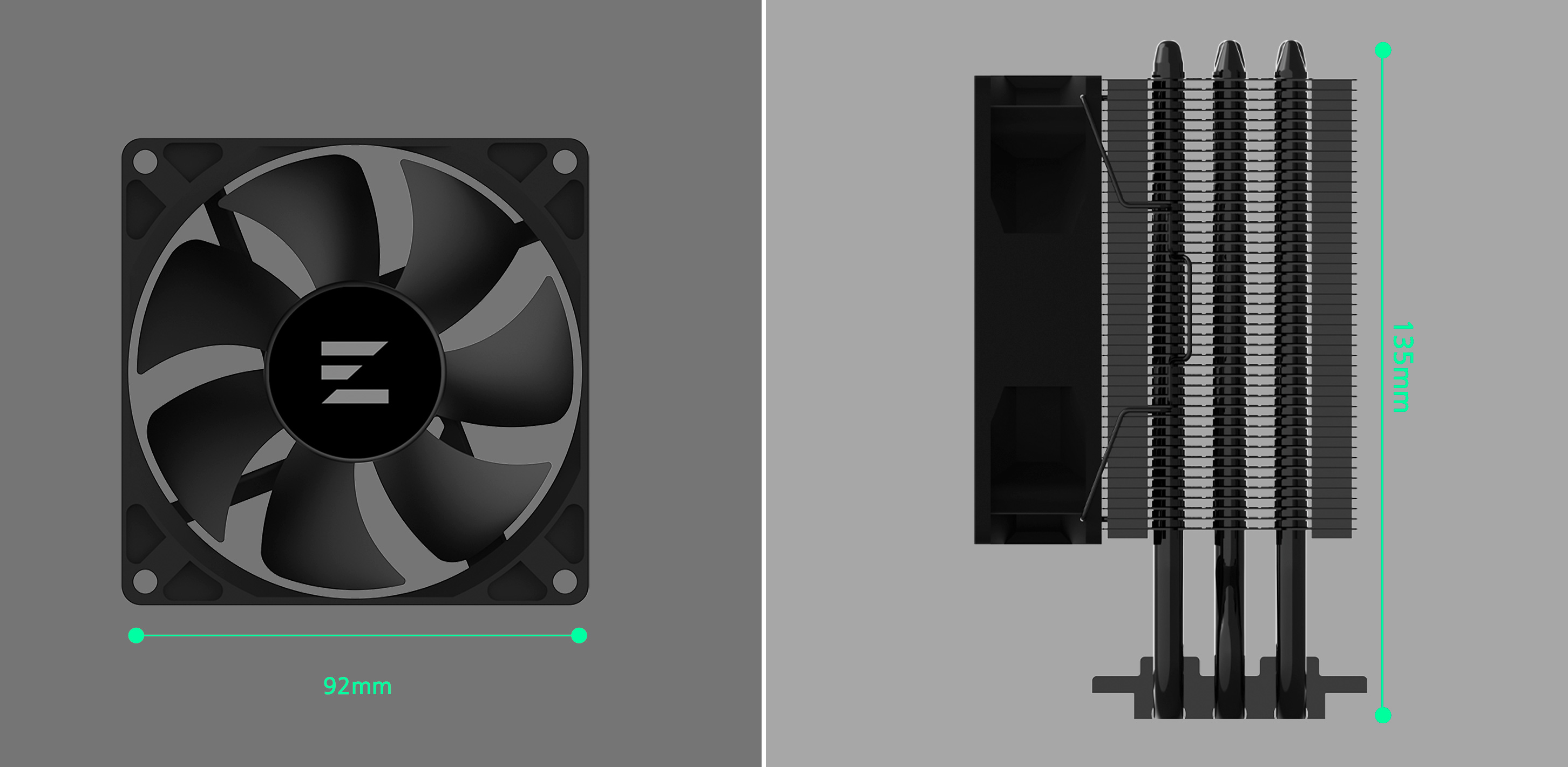 Власні технології Zalman і конструкція вентилятора поєднують у собі підвищений повітряний потік і високий статичний тиск, що ідеально підходить як для охолодження системи ПК, так і для повітряно-рідинного охолодження процесора.