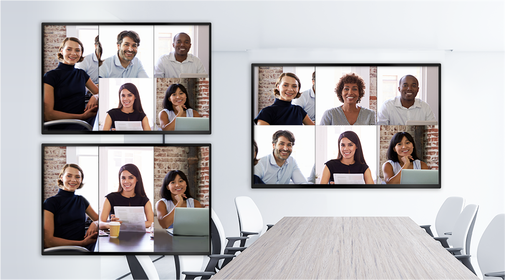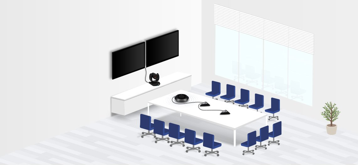 Отримайте повний огляд зали з чітким зображенням усіх зон. Камеру CAM550 оснащено двома об’єктивами з роздільною здатністю 4K. Перша камера PTZ з 12-кратним оптичним зумом (24-кратний загальний зум) забезпечує точне кадрування учасників наради. Другий – AI-об’єктив із кутом огляду 95 створює панорамне зображення залу.