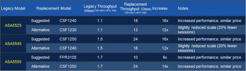 У 2025 році постає необхідність заміни пристроїв ASA5525, 5545 і 5555, підтримання яких буде припинено наприкінці вересня виробником. Крім того, на моделі ASA5506, 5508, 5516 востаннє можна буде оновити ліцензії, а з 2026 року їх також буде знято з підтримки та гарантії RMA. Саме тому вже зараз треба вибрати пристрої, які не лише замінять попередні, а й забезпечать організаціям стабільний захист і продуктивність на найближчі 5–7 років.
