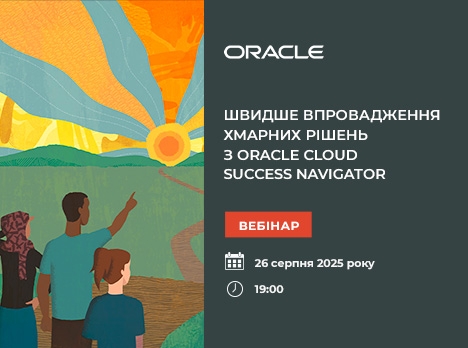 26 серпня 2025 року о 19:00 долучайтеся до вебінару, щоби дізнатися більше про Oracle Cloud Success Navigator – інтерактивну безкоштовну цифрову платформу, яка допомагає прискорювати хмарну трансформацію та отримувати максимальну віддачу від інвестицій в Oracle Cloud. Протягом зустрічі можна буде отримати доступ до ключових матеріалів і скористатися можливістю поставити запитання до спеціалістів Oracle.