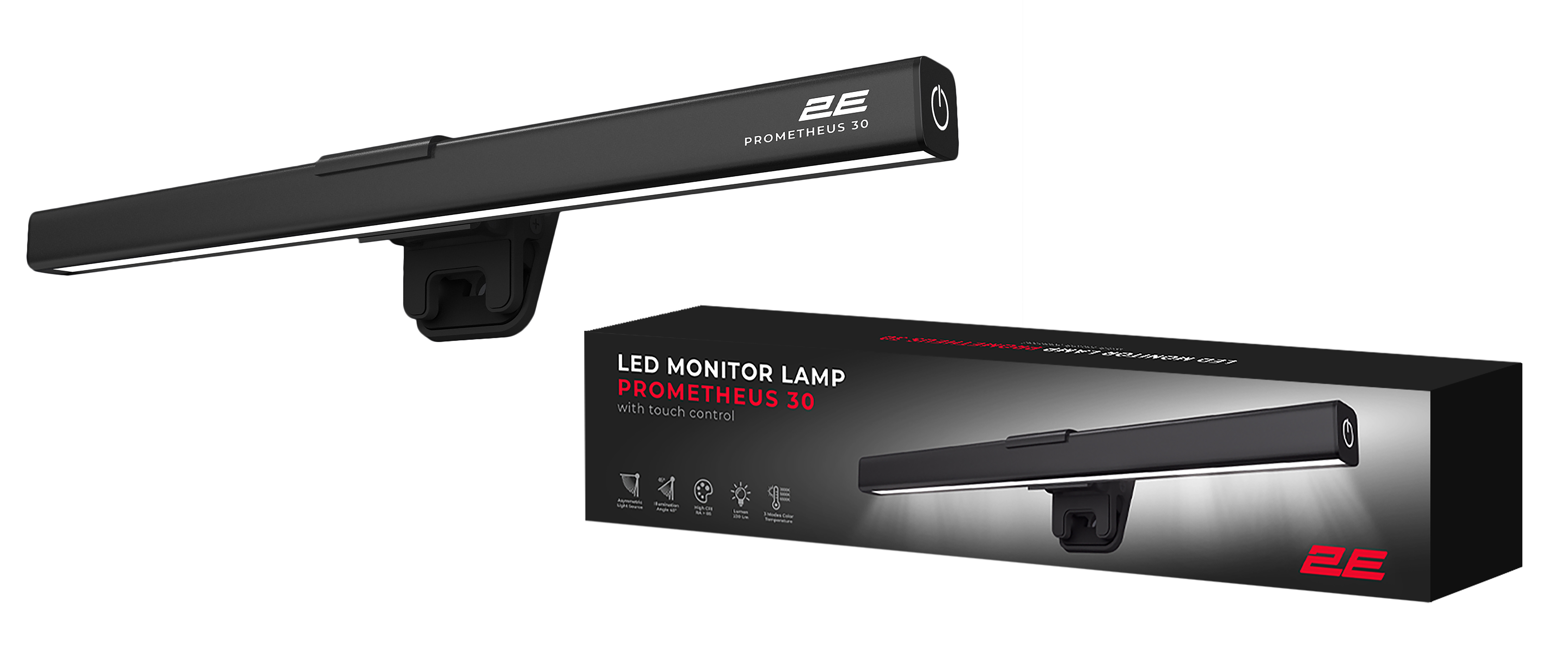 Робота чи дозвілля за комп’ютером у вечірній час потребує правильно організованого освітлення. Звичайні настільні лампи займають місце, створюють відблиски на екрані та нерівномірно розсіюють світло. 2E розв’язує ці проблеми, пропонуючи нову лінійку ламп, які кріплять до монітора.