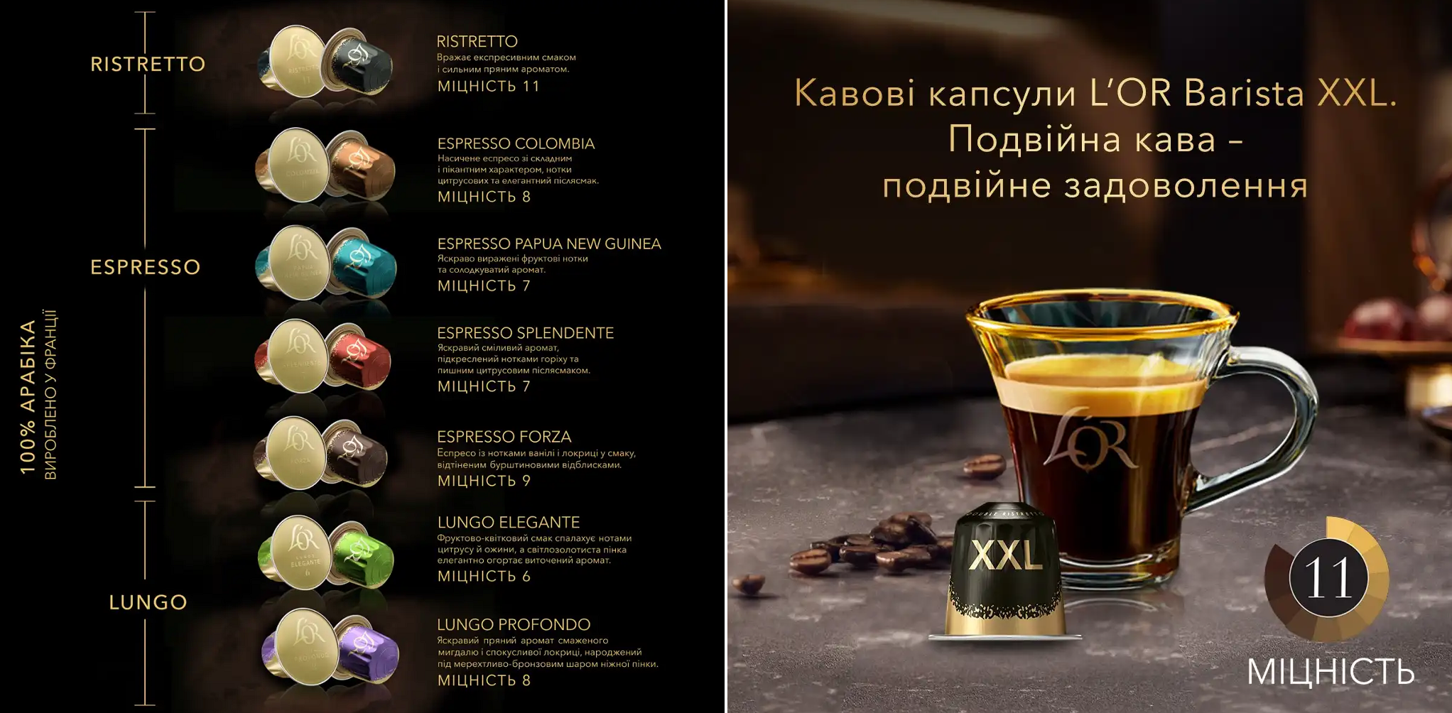 Разом із кавомашиною варто придбати й капсули L'OR, щоб оцінити всю палітру смаків. В асортименті – класичні та спеціальні бленди зі 100 % арабіки: