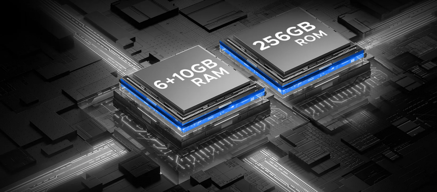 Обсяг оперативної пам’яті 6 ГБ. Вбудоване сховище на 256 ГБ забезпечує достатньо місця для фотографій, відео, документів і застосунків, а за необхідності його можна розширити до 2 ТБ за допомогою картки пам’яті.