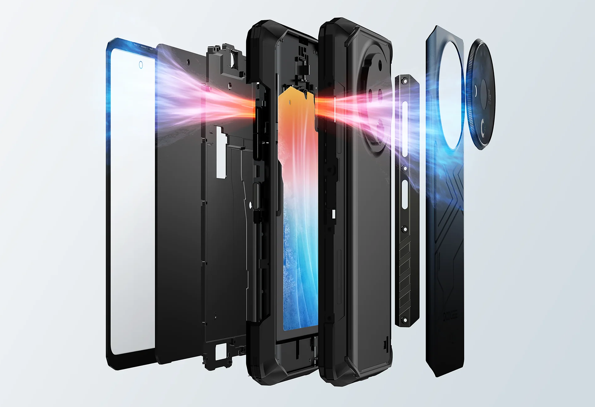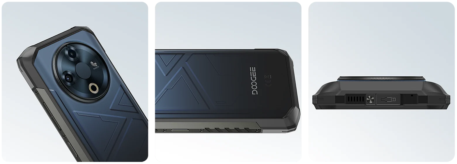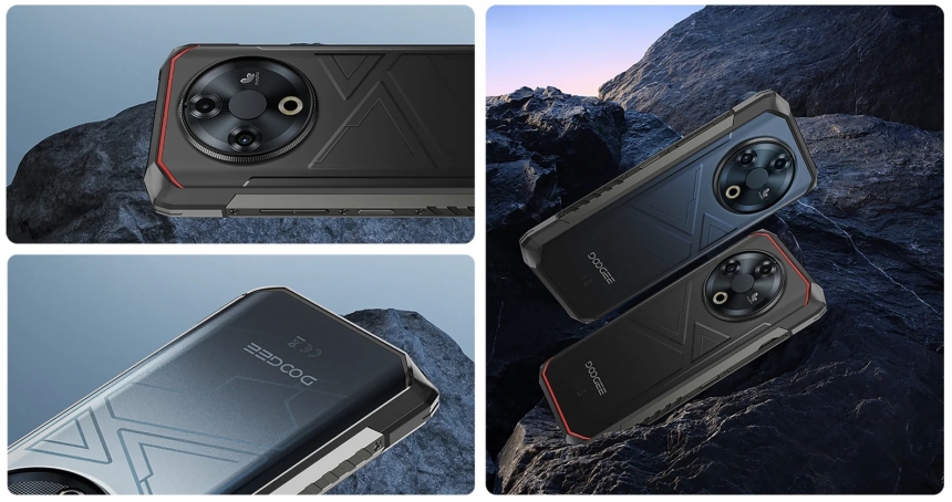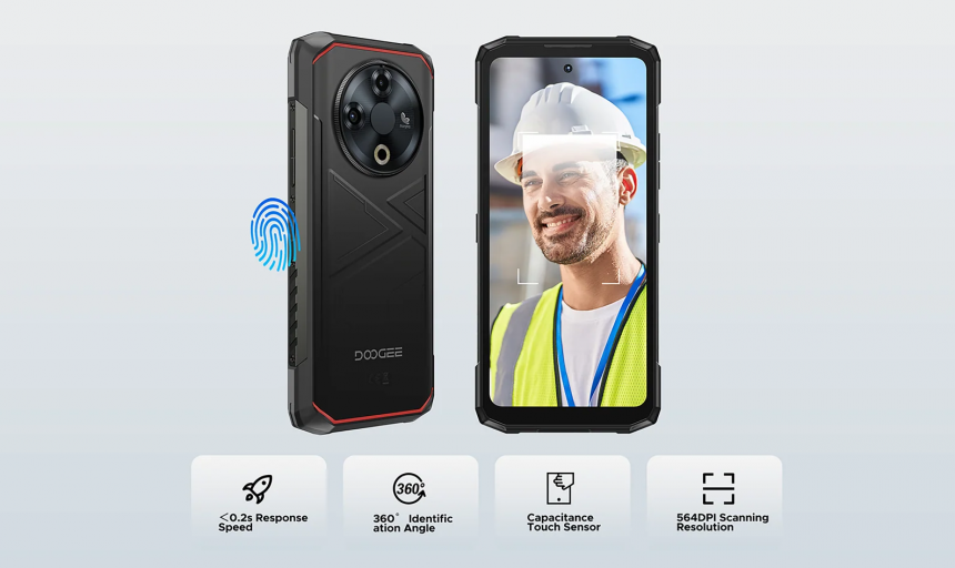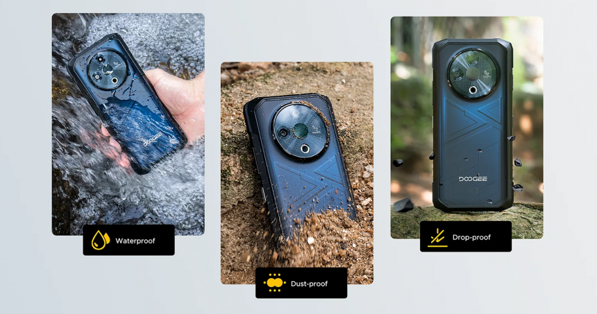 Doogee Fire 6 створено з прицілом на витривалість. Корпус отримав багатошарову захисну структуру: армований полімер із прогумованими вставками знижує ризик пошкодження в разі падіння, а металеві рамки додають жорсткості. Смартфон відповідає стандартам IP68, IP69K та MIL-STD-810H, що підтверджує стійкість до пилу, води, високого тиску та екстремальних температур.
