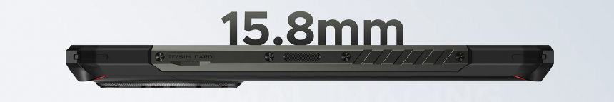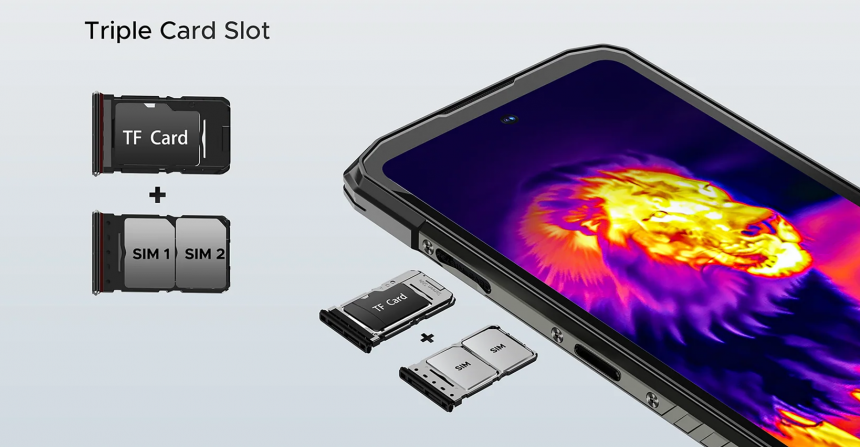 Ліву бічну грань обладнано лотком для двох nano-SIM карток або однієї SIM і карти пам’яті microSD для розширення сховища. Також тут передбачено додаткову клавішу для швидкого запуску потрібних функцій, як-от ліхтарика або тепловізора. Така ергономіка забезпечує швидкий доступ до всіх функцій без додаткових рухів.