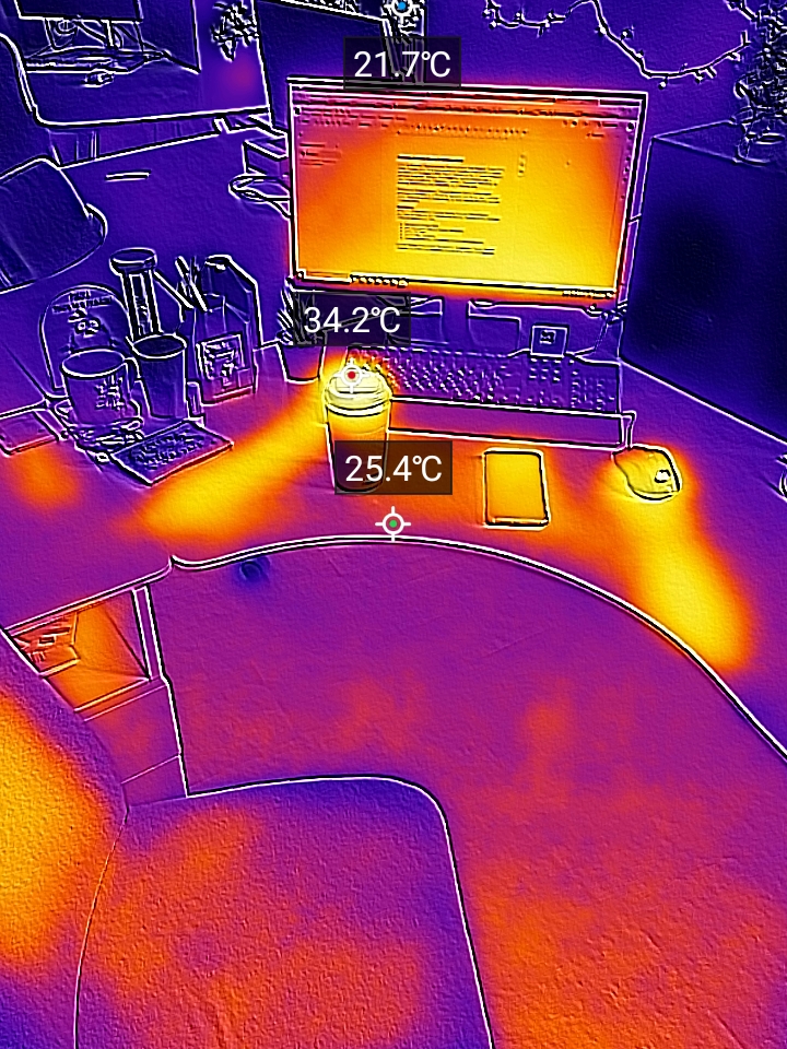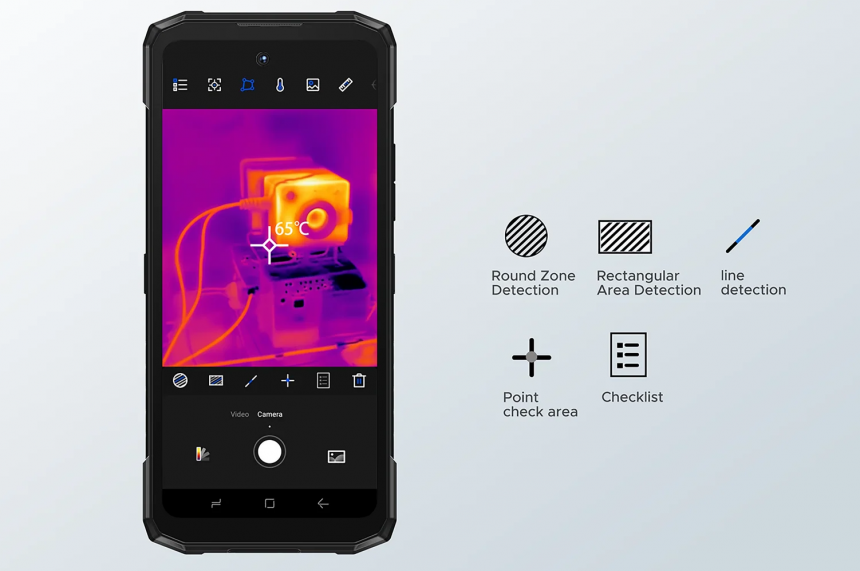 8 МП ширококутний сенсор забезпечує розширене поле зору для пейзажів або групових фотографій, а тепловізійний датчик додає можливості вимірювання температури поверхонь.