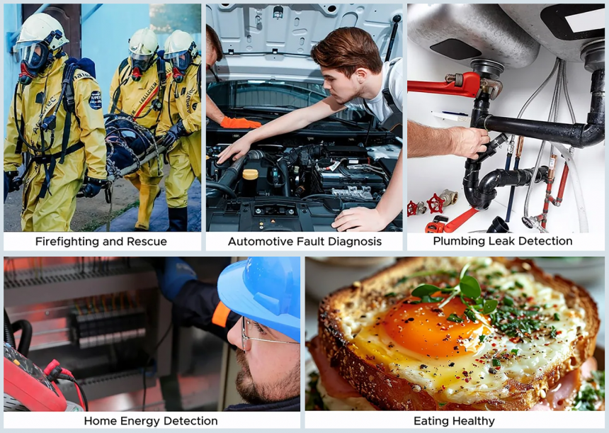 2. Побут: швидке виявлення перегрітого електропристрою, проводки або моторного компонента, що допомагає запобігти аваріям.