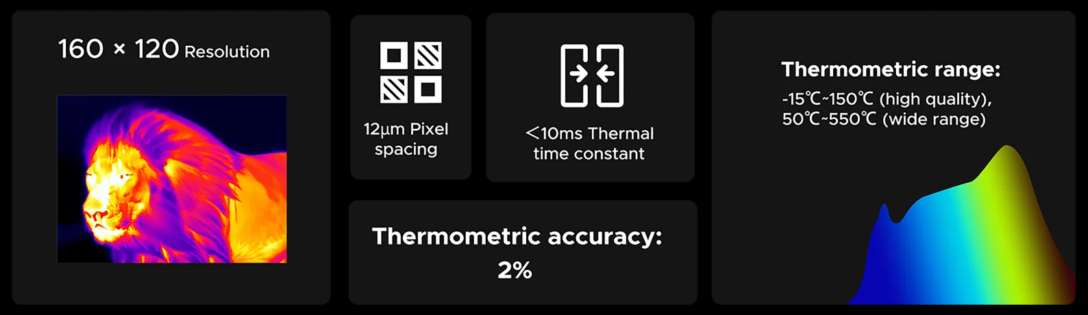 • Роздільна здатність: 160 × 120 з піксельним інтервалом 12 µm – гарне співвідношення між деталізацією та чутливістю.