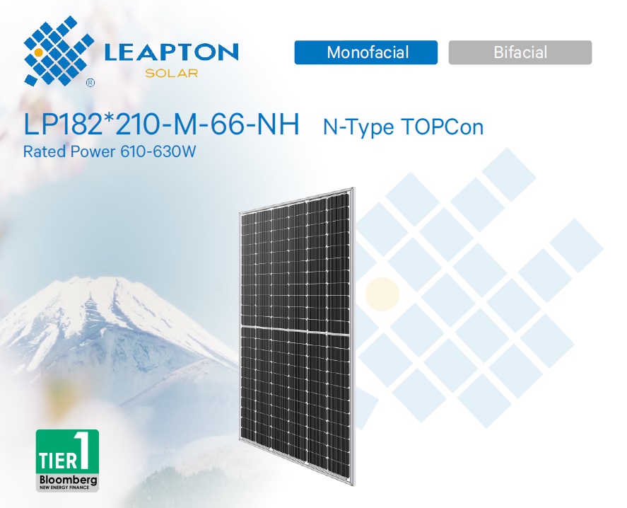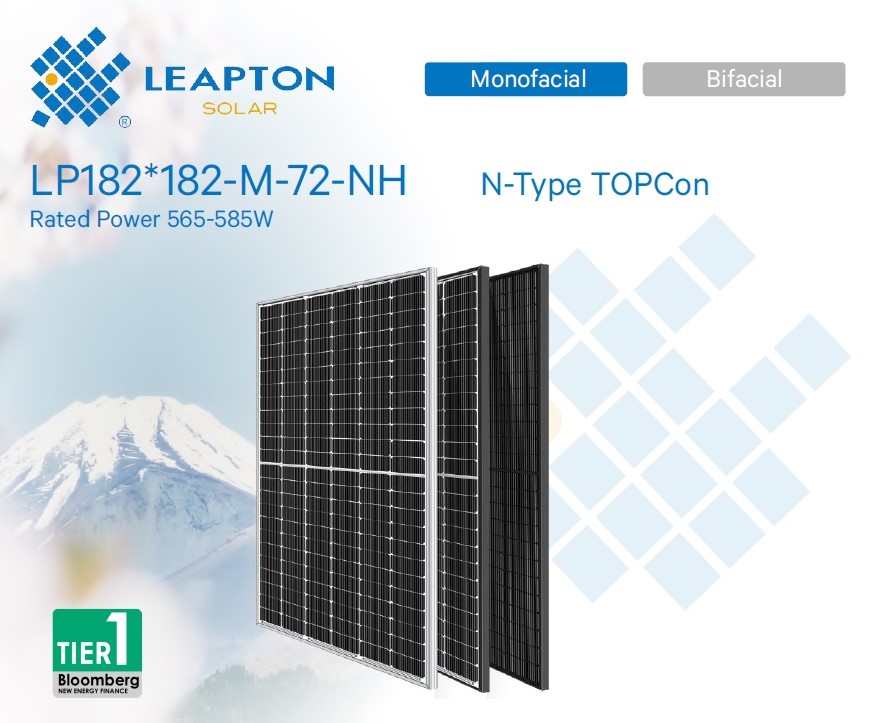 Leapton Energy – японський виробник якісних сонячних модулів, який займає позицію Tier-1 в галузі. Leapton Energy надає 25-річну гарантію на продукт та 30-річну гарантію потужності для N-type та bi-facial модулів. Leapton Energy виробляє широкий асортимент сонячних панелей потужністю від 410 Вт до 720 Вт із різною кількістю та розміром елементів.