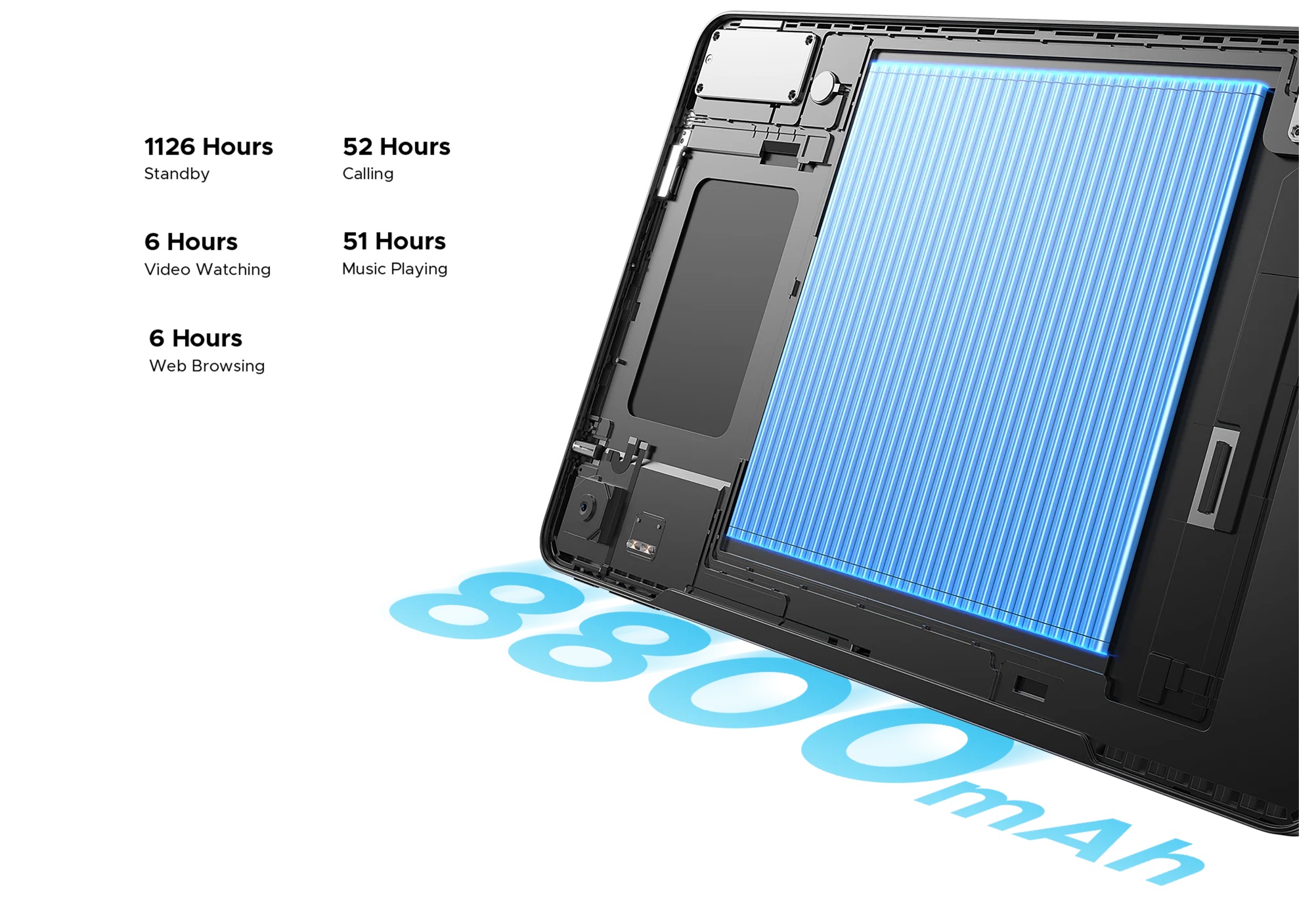 Планшет Doogee T36 протестовано в щоденних сценаріях: перегляд відео, робота з документами, вебсерфінг і онлайн-уроки. Акумулятор на 8 800 мА·год забезпечує стабільну роботу понад один день за активного використання і до двох днів за помірного навантаження.
