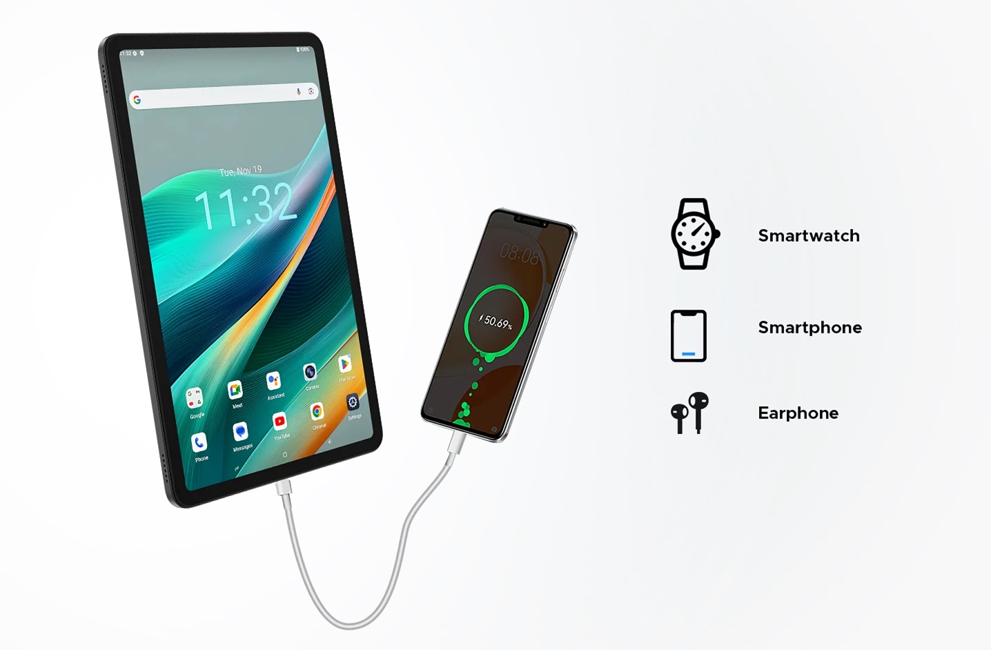 Тестування показало, що планшет добре витримує мультимедійні навантаження: перегляд Full HD відео до 7–8 год без перерви, ігри середньої графіки – близько 5-6 год. USB Type-C з OTG дає змогу підзаряджати інші пристрої, перетворюючи T36 на мобільний павербанк, що особливо зручно в подорожах.