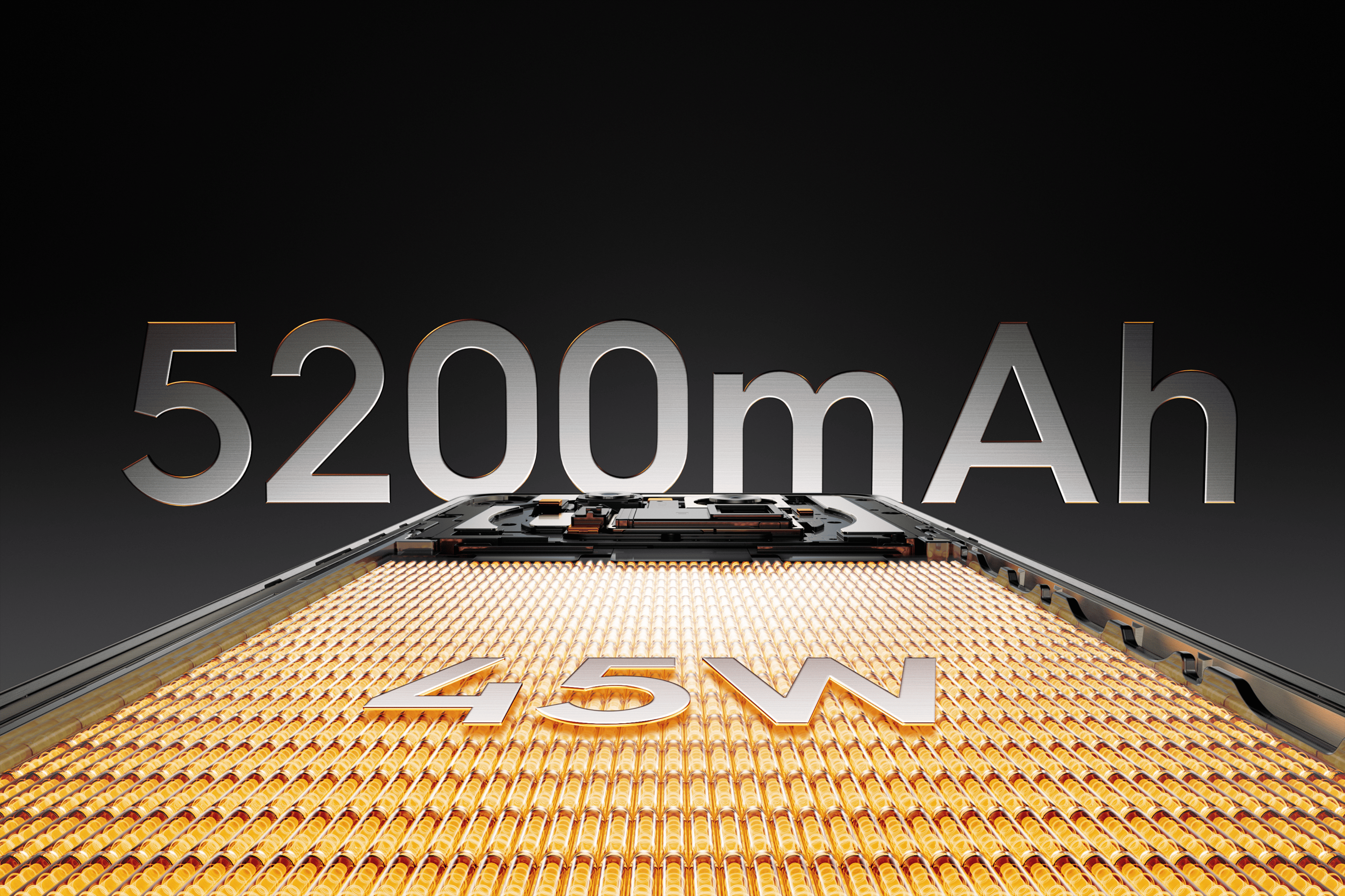 Акумулятор на 5200 мА·год забезпечує довгу роботу без підзаряджання навіть за інтенсивного користування: перегляд відео, активні месенджери, навігація. Завдяки швидкій зарядці 45 Вт приблизно за 25 хв батарея відновлює понад половину заряду, а повна зарядка займає близько 45 хв.