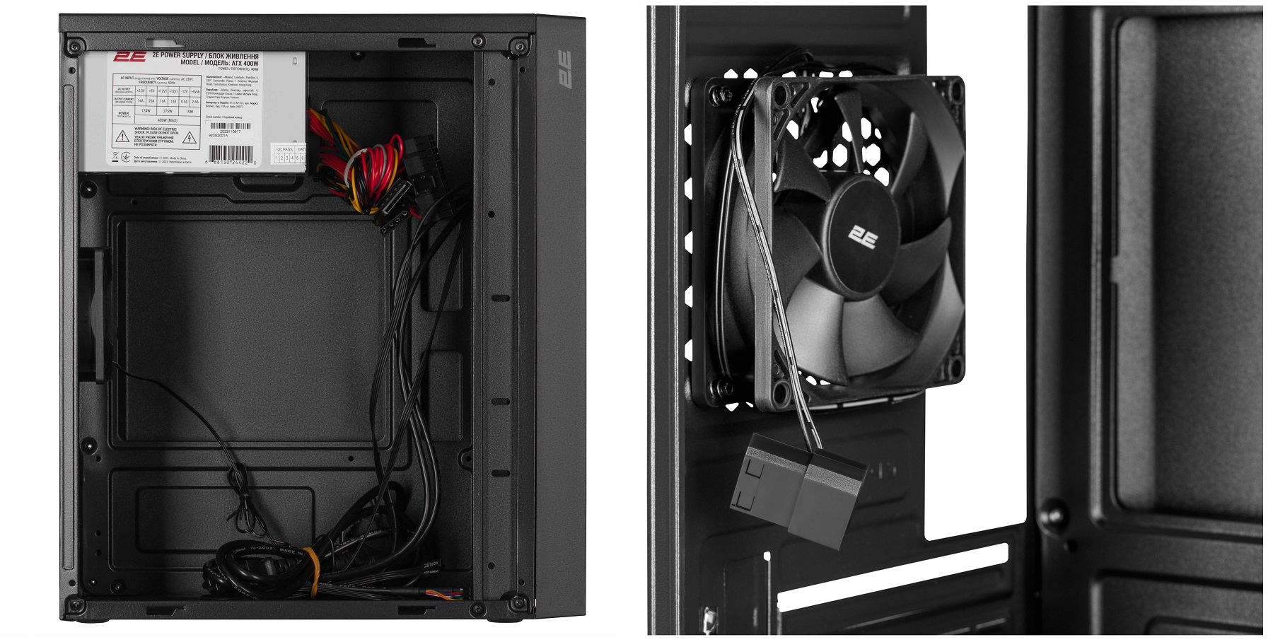 Щодо конструкції: корпуси 2E-TMX03 та 2E-TMX04 розраховано на 2 (або 1) 3,5″ та 3 (або 2) 2,5″ накопичувачі та мають стандартну кількість слотів розширення – 4 шт. Довжина відеокарти для встановлення в зазначені моделі корпусів не має перевищувати 220 мм.