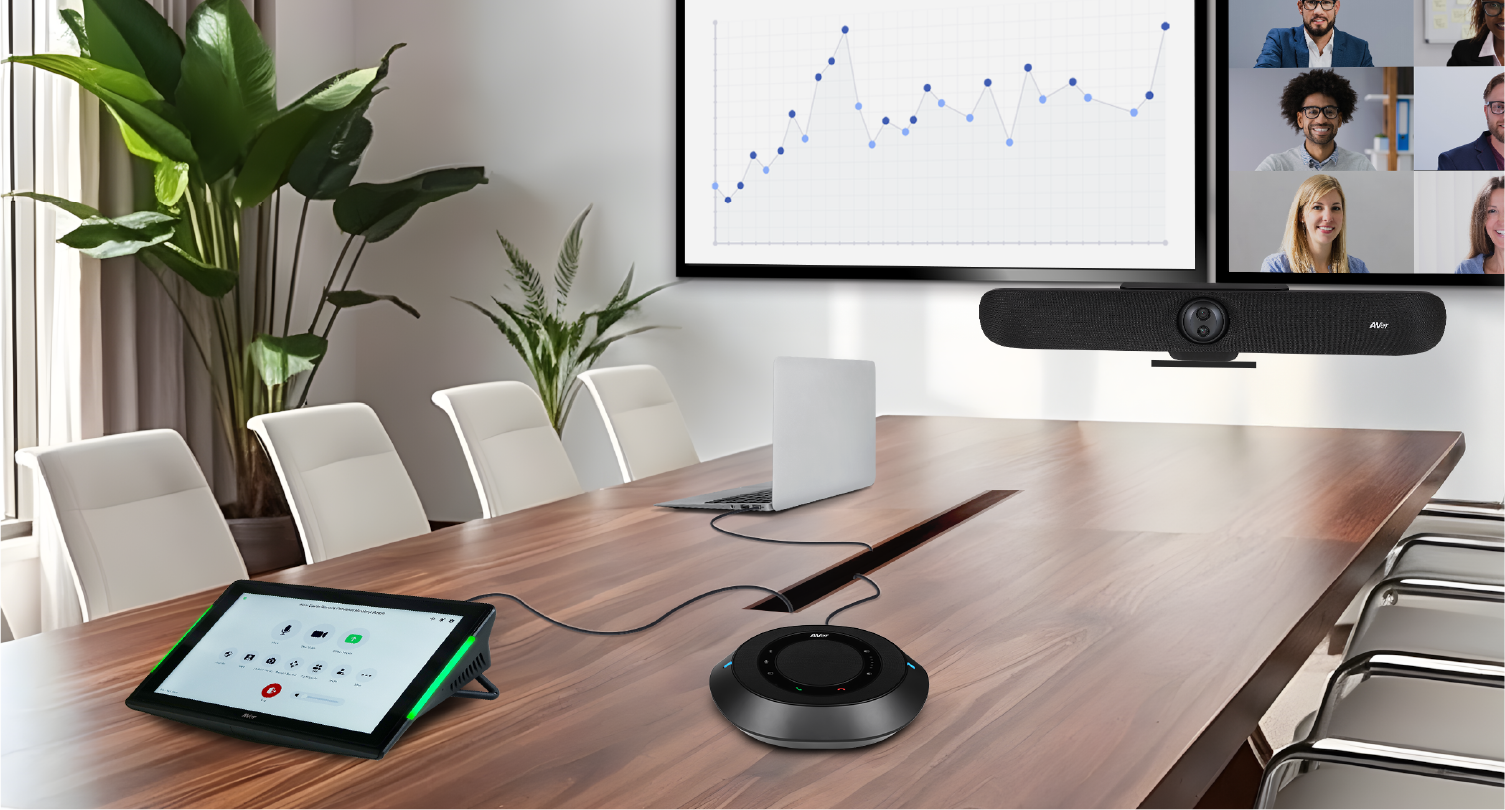 Відеотермінал AVer VB370A з двома 4K об’єктивами забезпечує гарну якість відео та звуку, гарантуючи, що кожен учасник відчує себе присутнім. Інтелектуальне відстеження голосу на основі штучного інтелекту гарантує чітке відображення всіх учасників, а встановлені з заводу попередні налаштування спрощують підключення. Розроблений для середніх і великих приміщень, VB370A підтримує два дисплеї і може легко масштабуватися для великих компаній. Сертифікація Zoom та ОС на базі Android забезпечують по-справжньому захоплюючі та продуктивні віртуальні зустрічі.